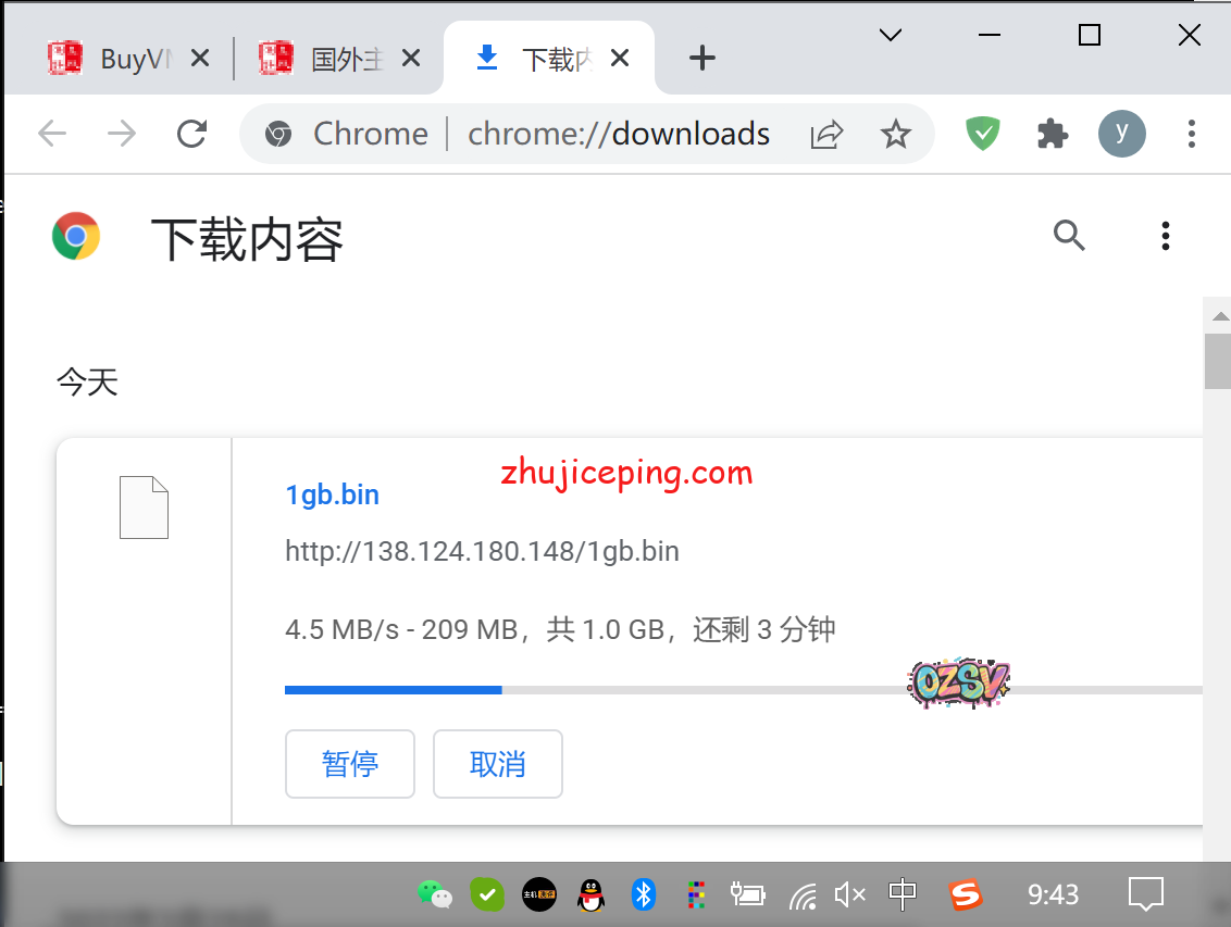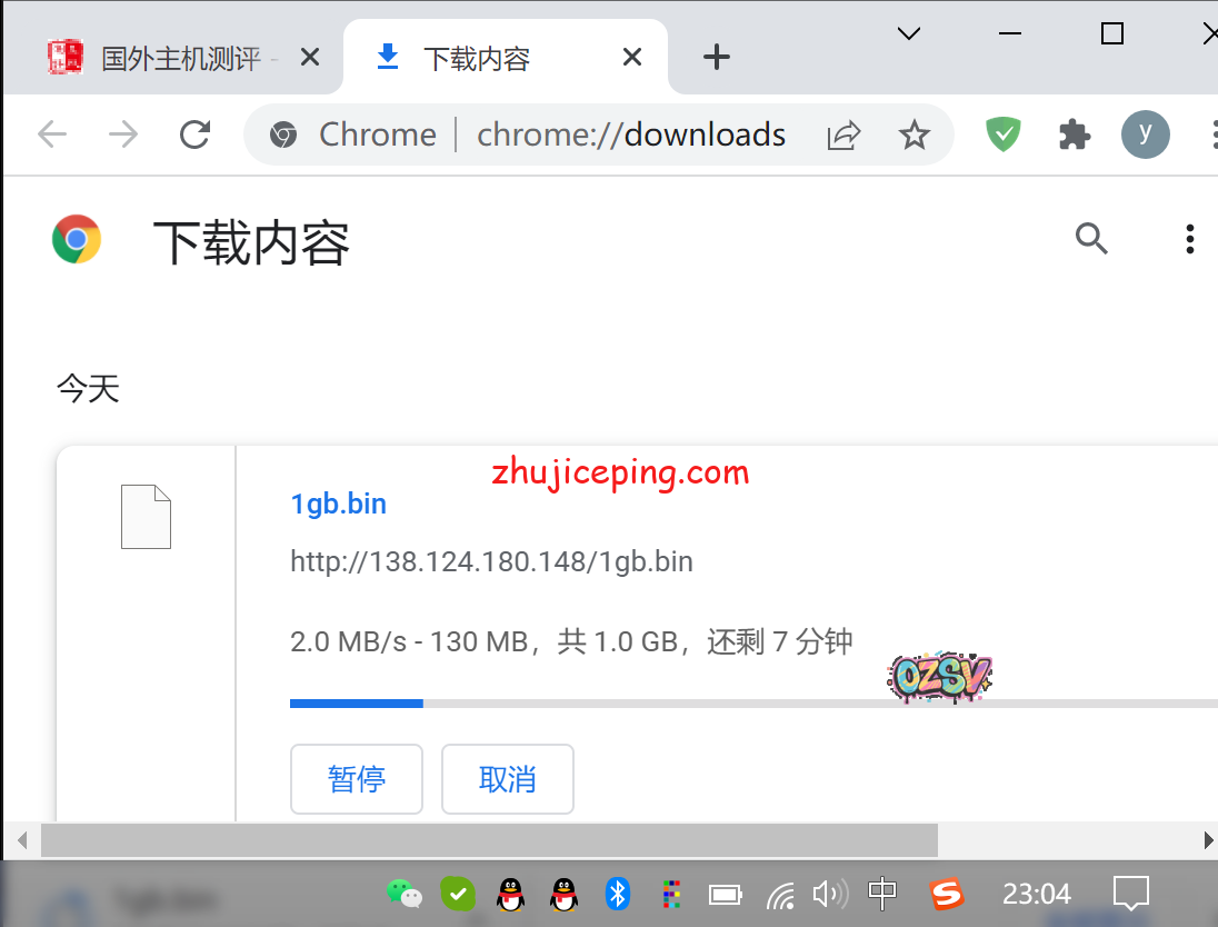 存放在测试VPS上的数据文件,广州电信直接通过Chrome下载的速度如下: