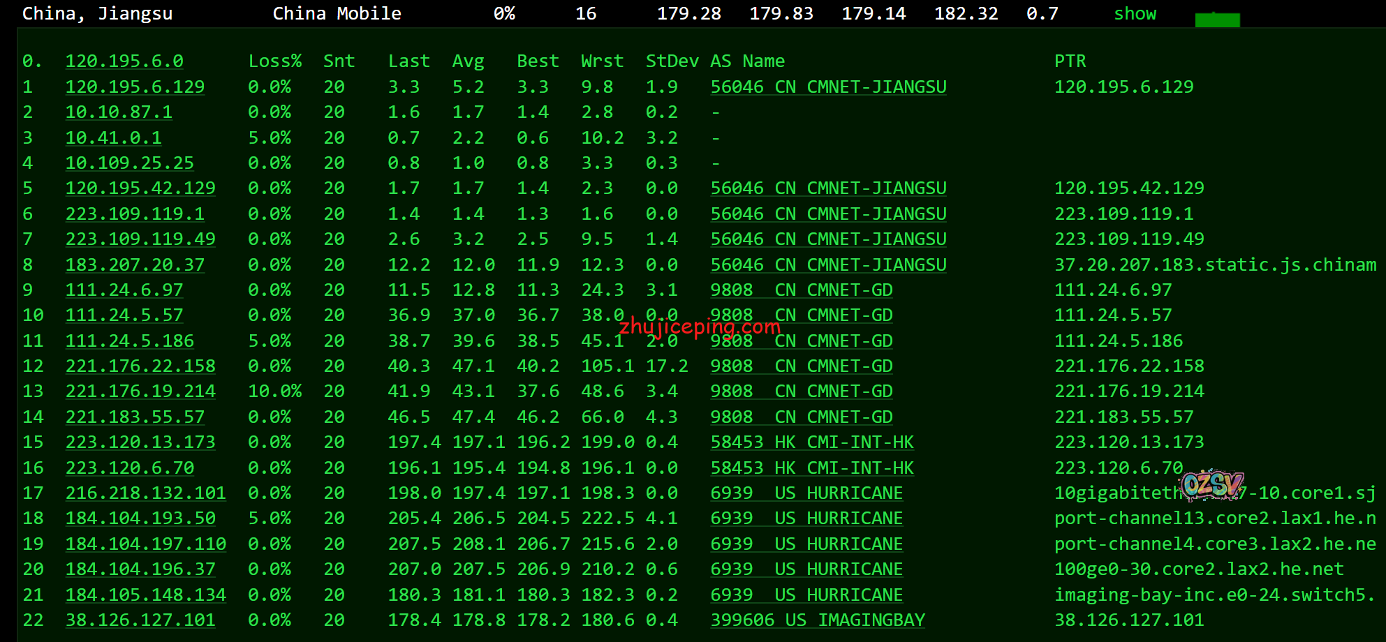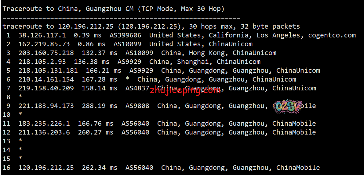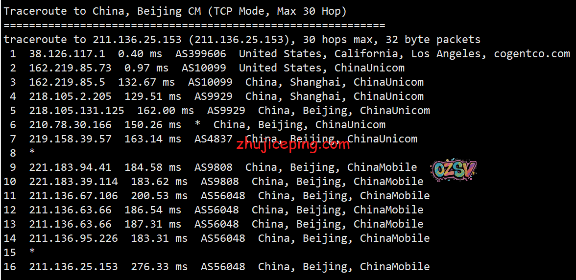 回程,到国内移动:先联通国际AS10099,然后联通AS9929,接着AS4837,在国内转移动