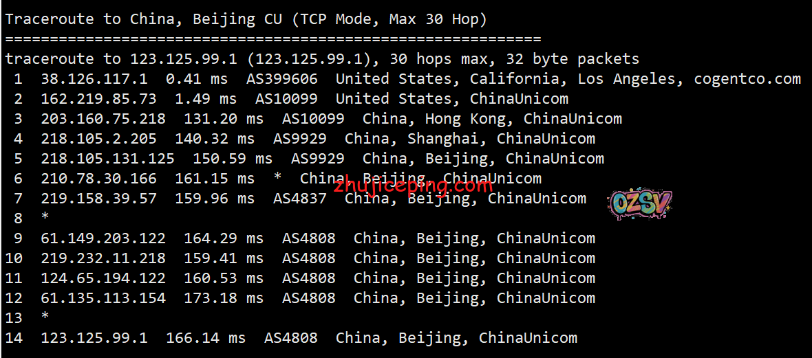 回程,到国内联通:先联通国际AS10099,然后联通AS9929,接着联通AS4837…