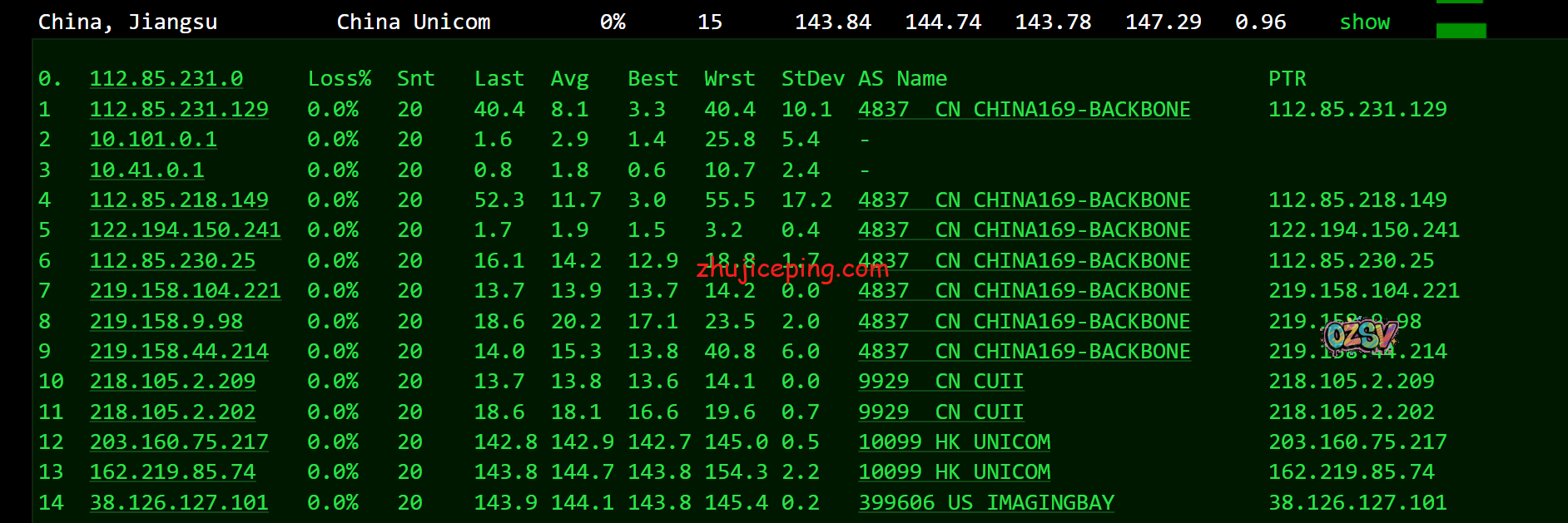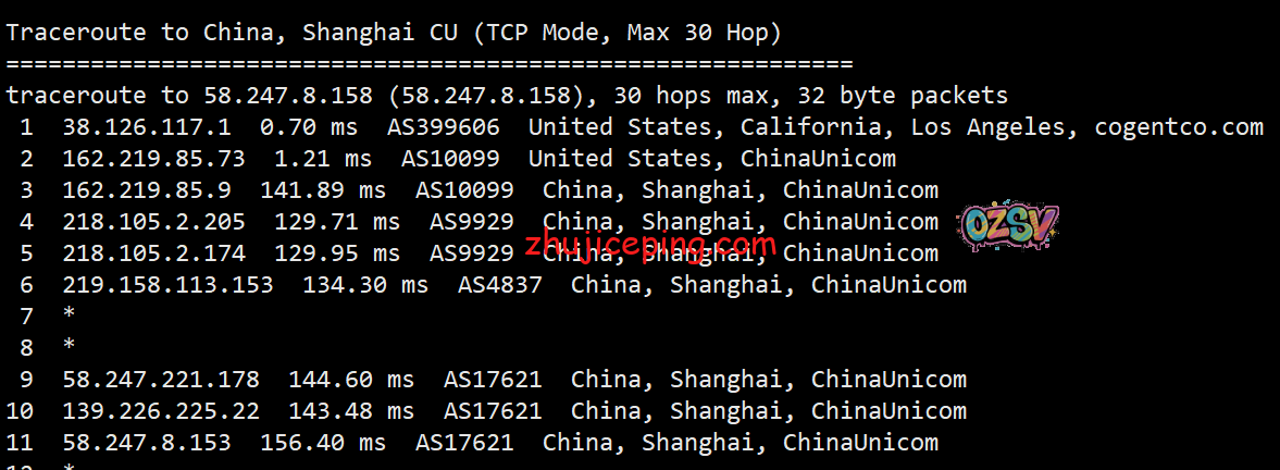 总体来说,速度上面是非常有保障的,毕竟联通AS9929(CUII)这种高端货对标的是电信AS4809(cn2 gia)。