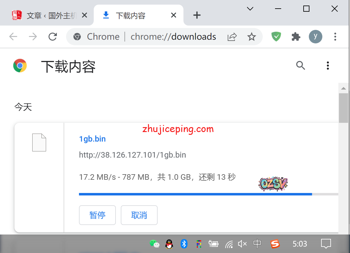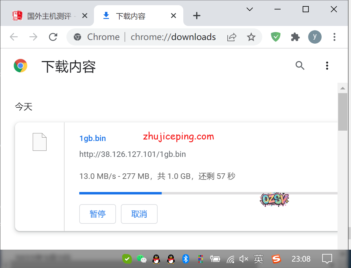 存放在测试VPS上的数据文件,广州电信,晚高峰下载速度13MB/S: