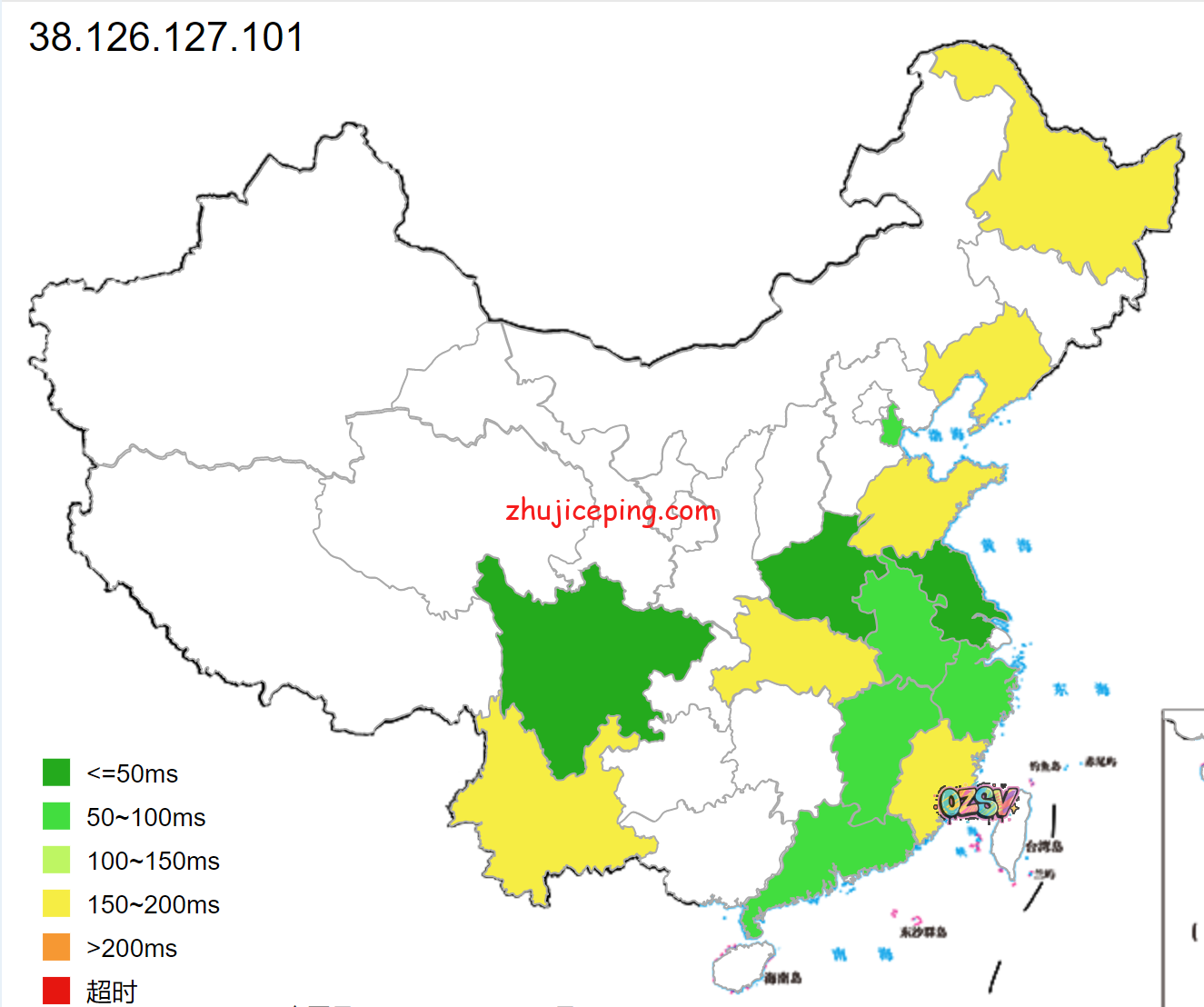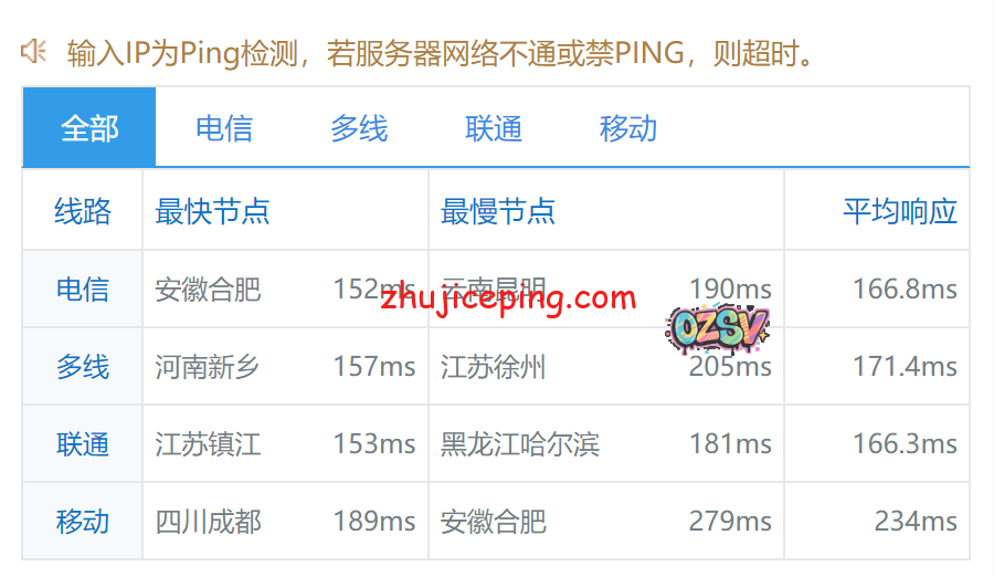 国内80个节点测试延迟,电信和联通的平均延迟在166毫秒的样子: