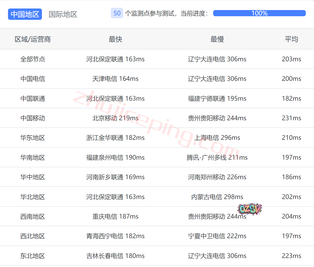 来看看在国内三网不同节点能跑多大带宽吧?大致数据如下: