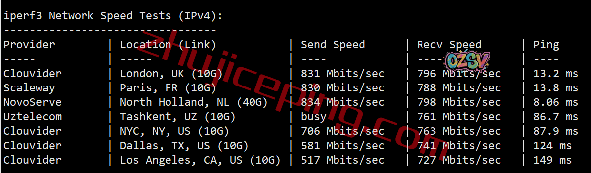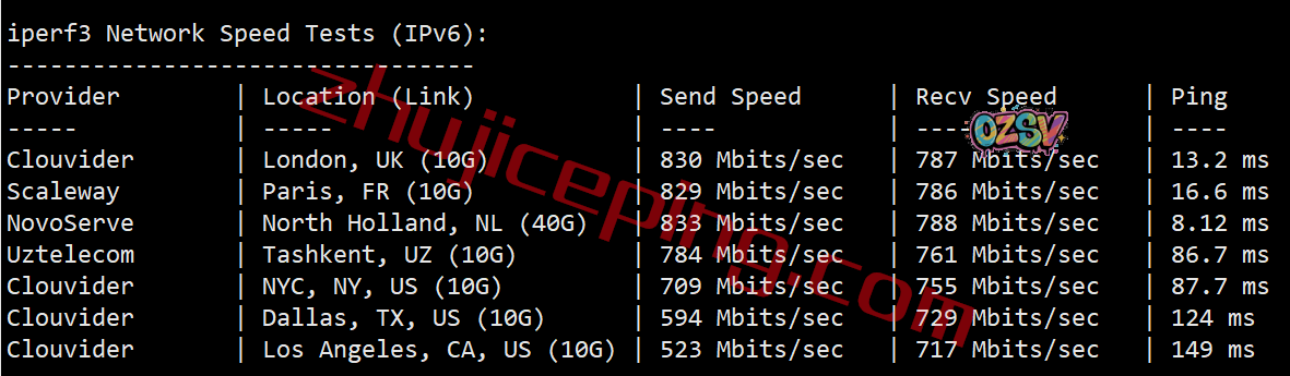 一样的iperf3测试,不过只是当前为IPv6环境: