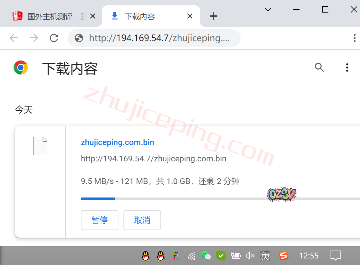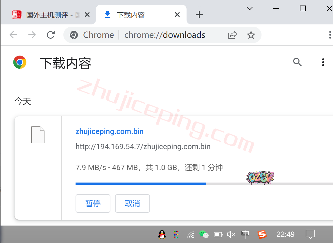 直接用浏览器下载存放在测试小鸡上面的文件,大致速度如下: