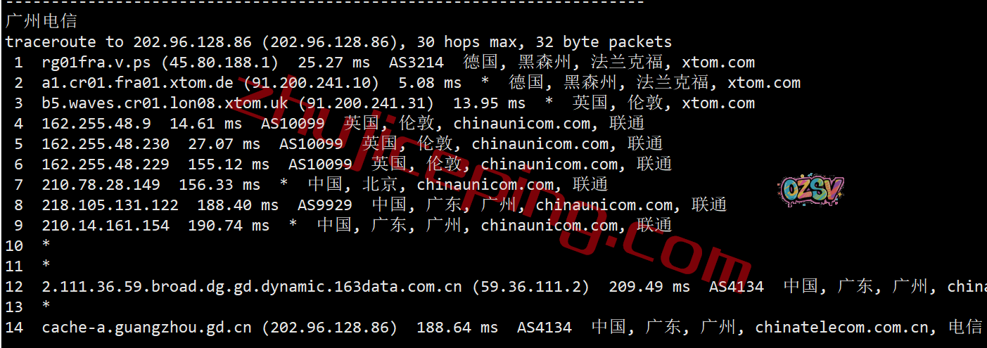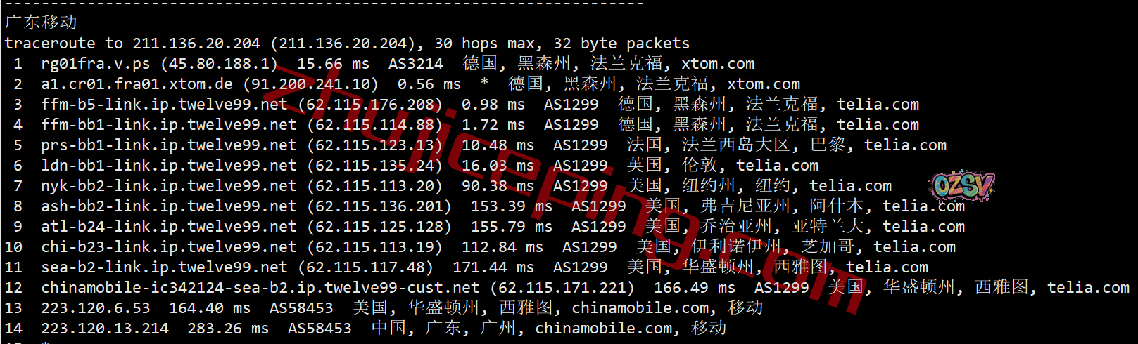 广州方向:走telia经过法国、美国东海岸-西海岸、从西东西雅图节点直接回国