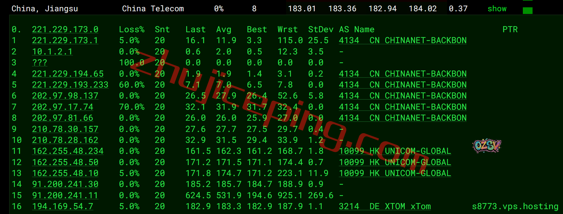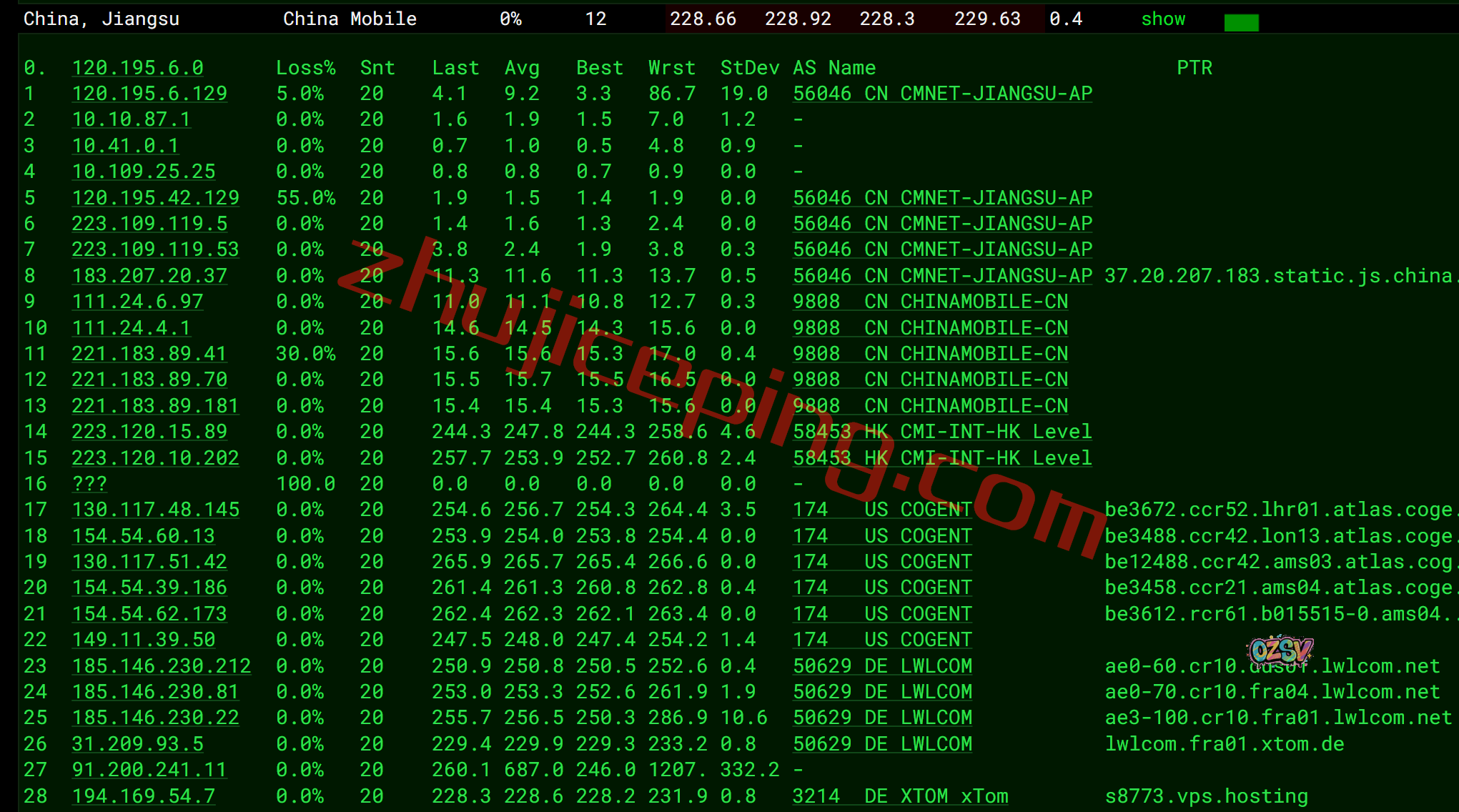 晚高峰时间段,这会儿骨干网炸裂,我们来看看这AS9929的效果: