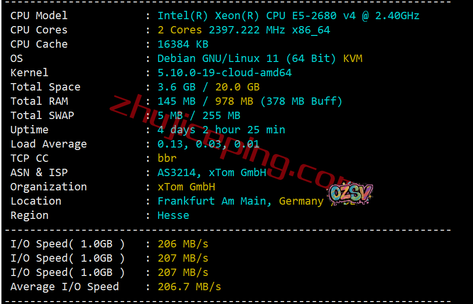 CPU为e5-2680v4(2.4GHz主频),开启了BBR,当前硬盘I/O大致在206MB/s: