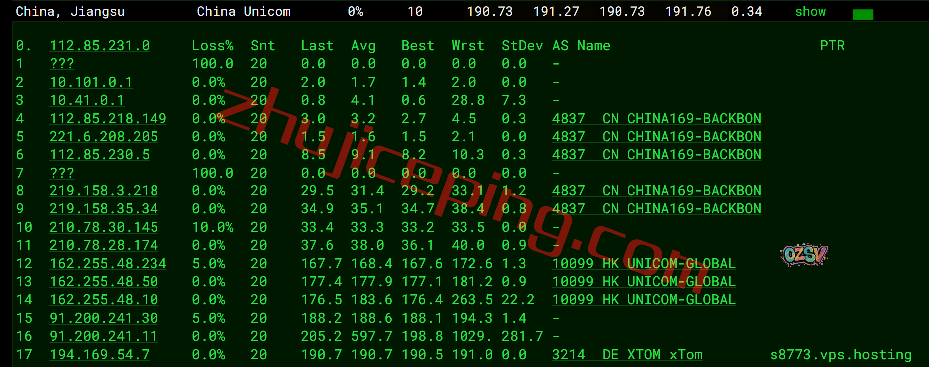 网络这块儿,电信、联通是双程联通AS9929,但是移动走的就是国际线路了,甚至还绕道美国。整体来说不太适合移动用户群体使用,电信和联通用户可以闭着眼用。