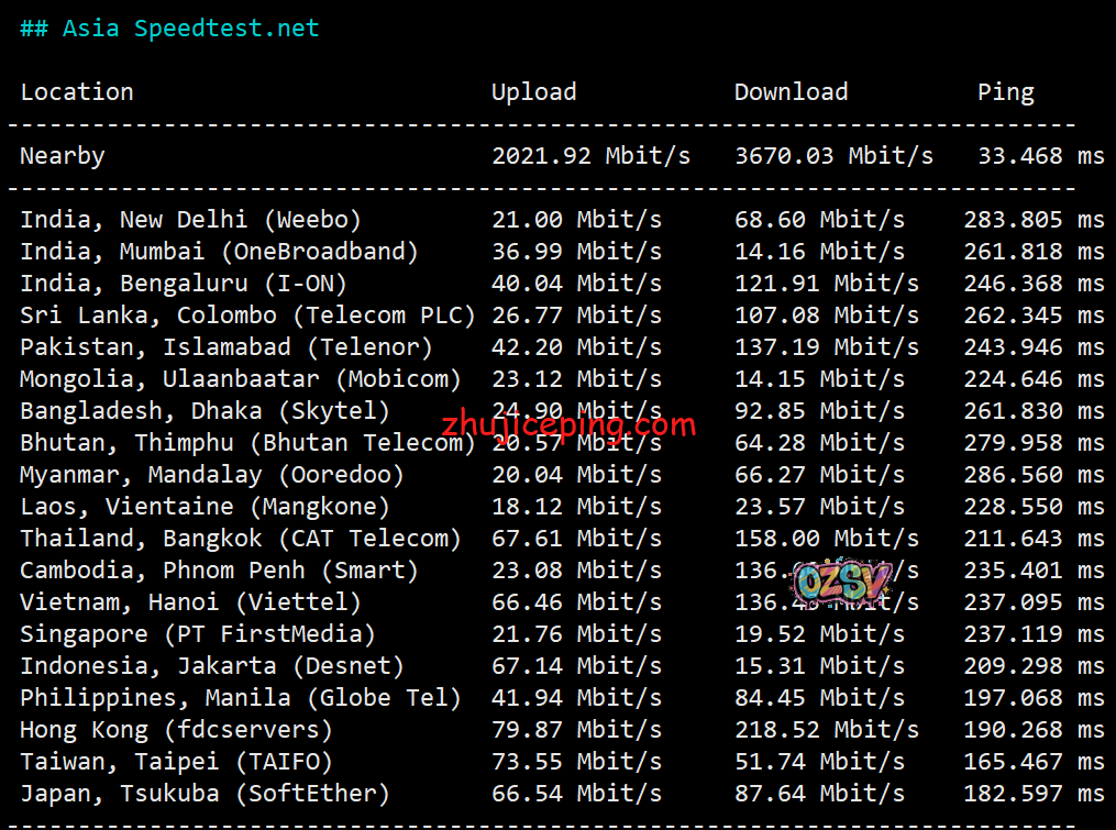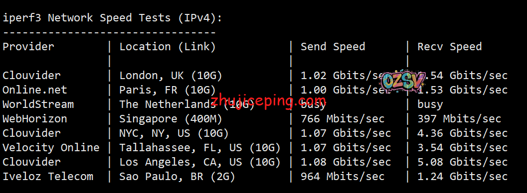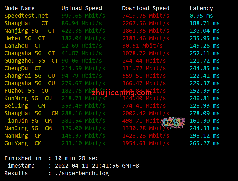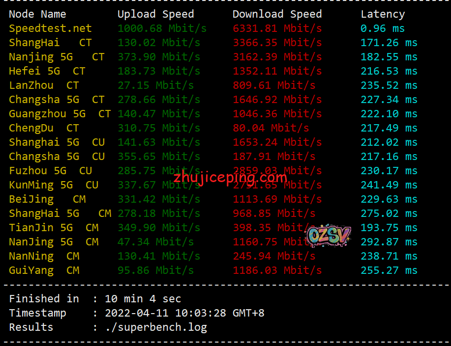 从就近节点来看上行限制的1Gbps被跑满了,下行有6Gbps;其他节点全部是国内的三网节点,真实效果就这样: