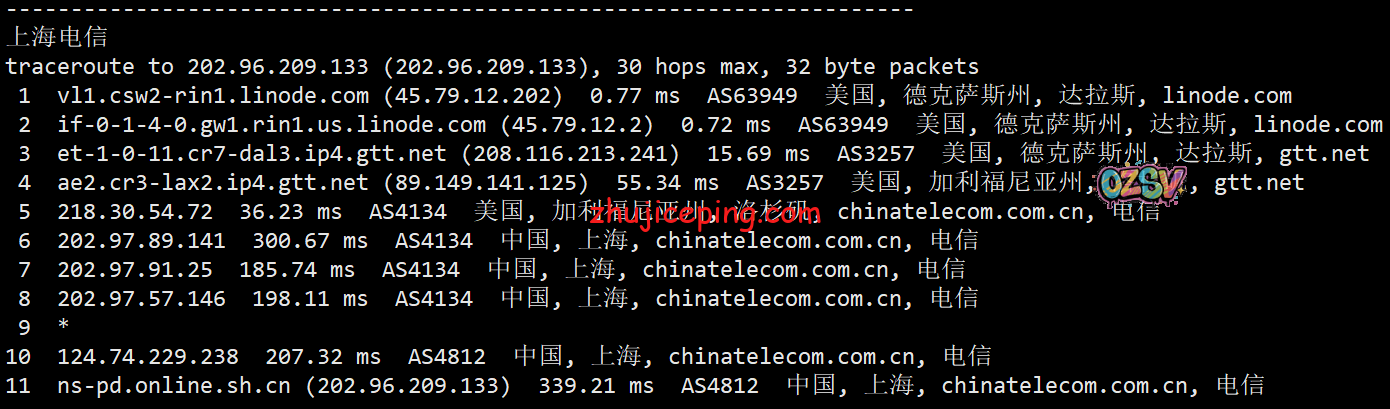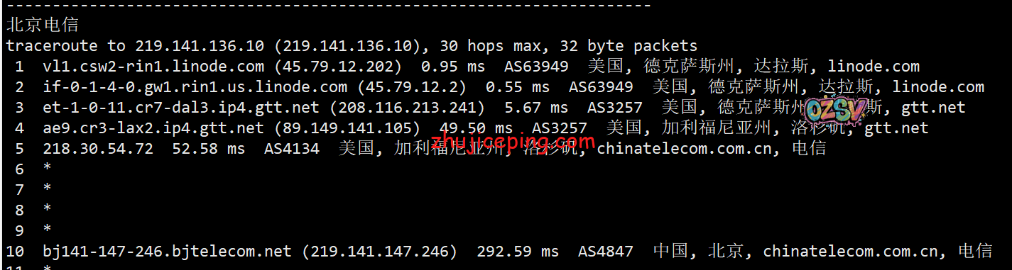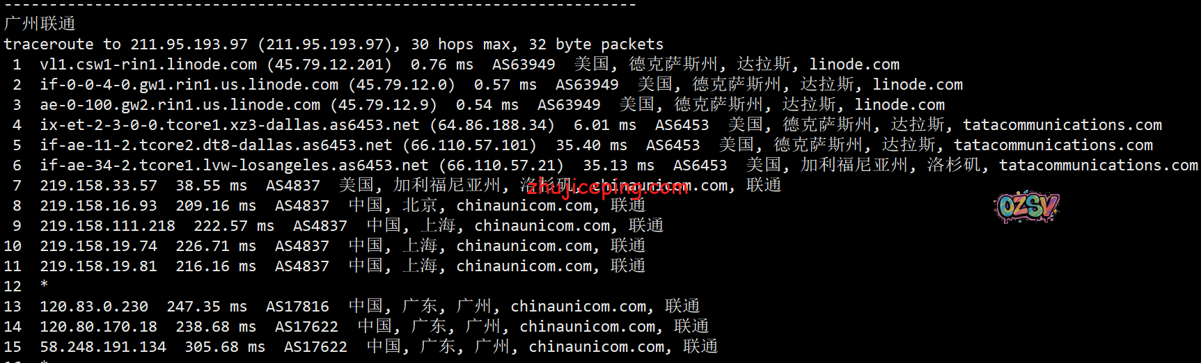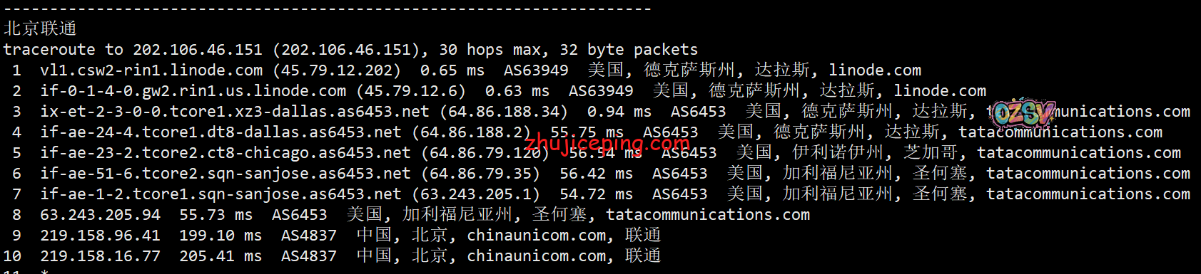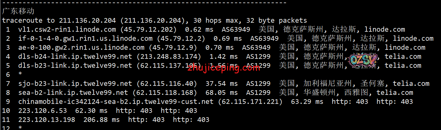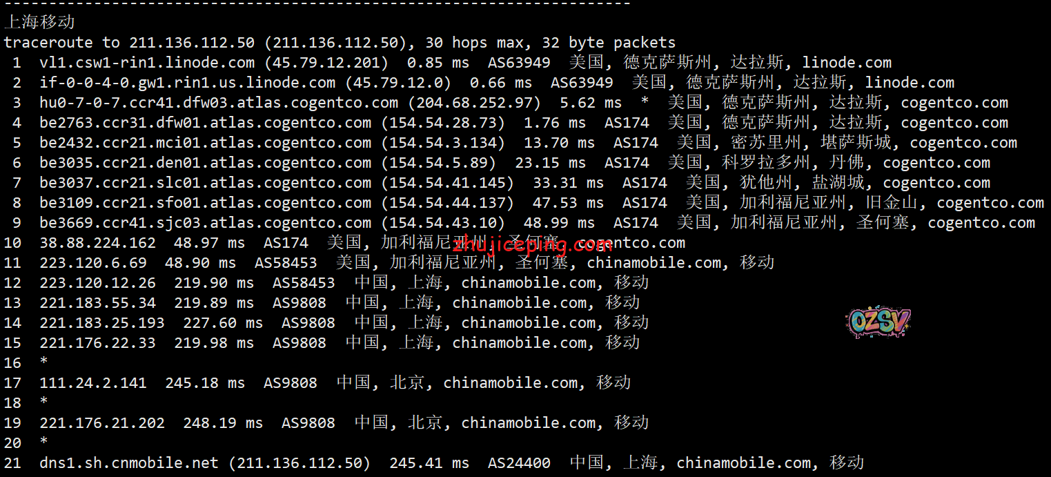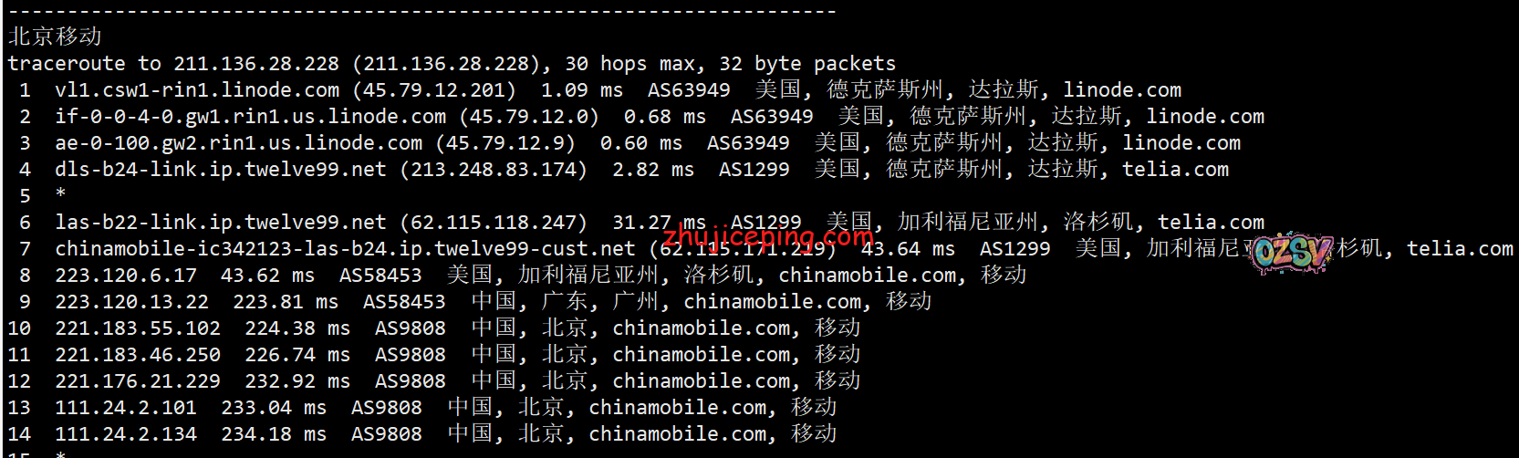 回程,到国内移动:从达拉斯出来之后最后都是从移动在美国西海岸圣何塞、洛杉矶、西雅图的节点出口直连回国。