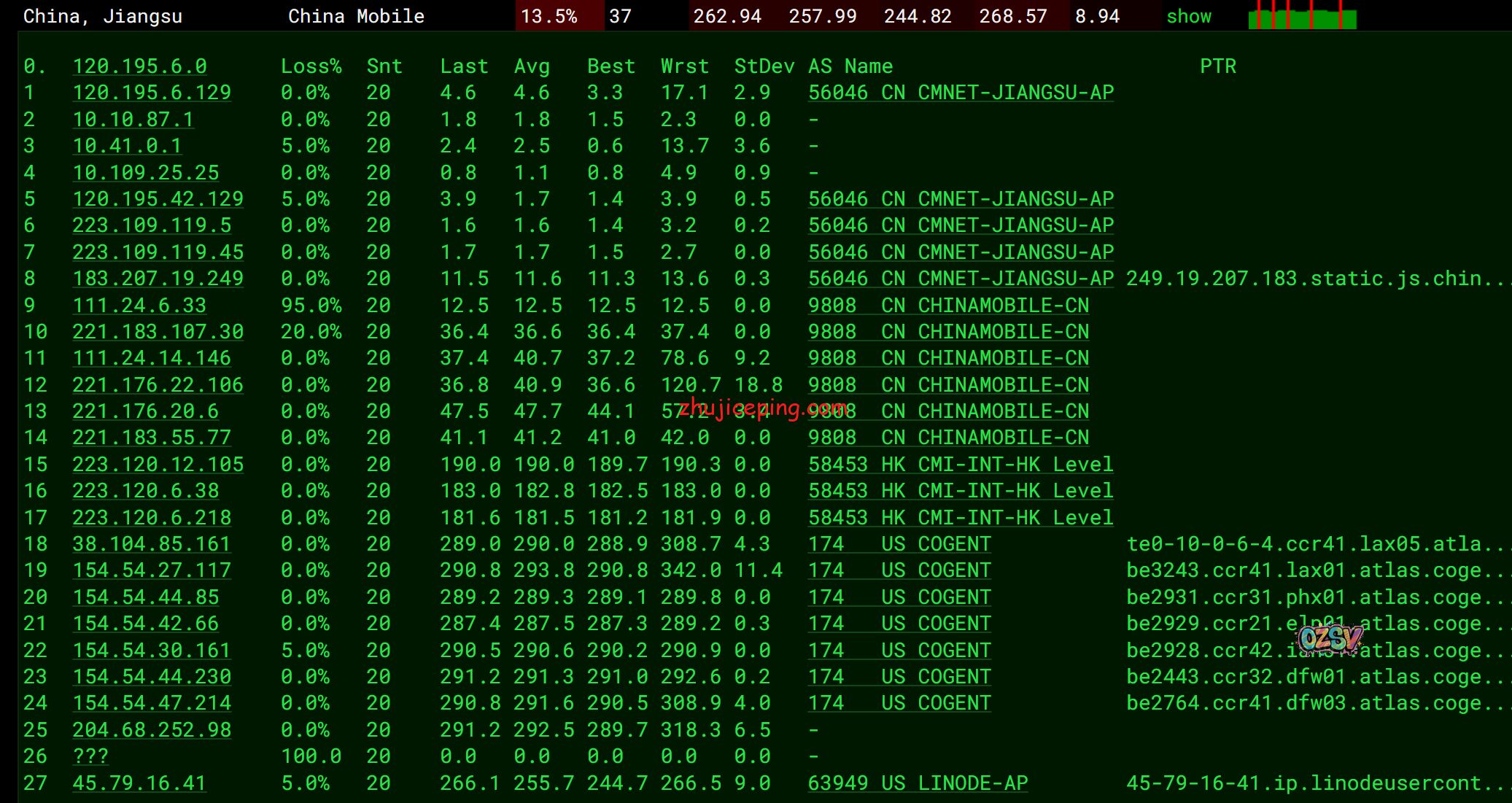 回程,电信和移动基本上都是从自己西海岸节点回来的,联通也都是从西海岸出口对接联通自己的AS4837,总体来说回程优化的都不错,最后速度还是取决于个人的实际情况了。
