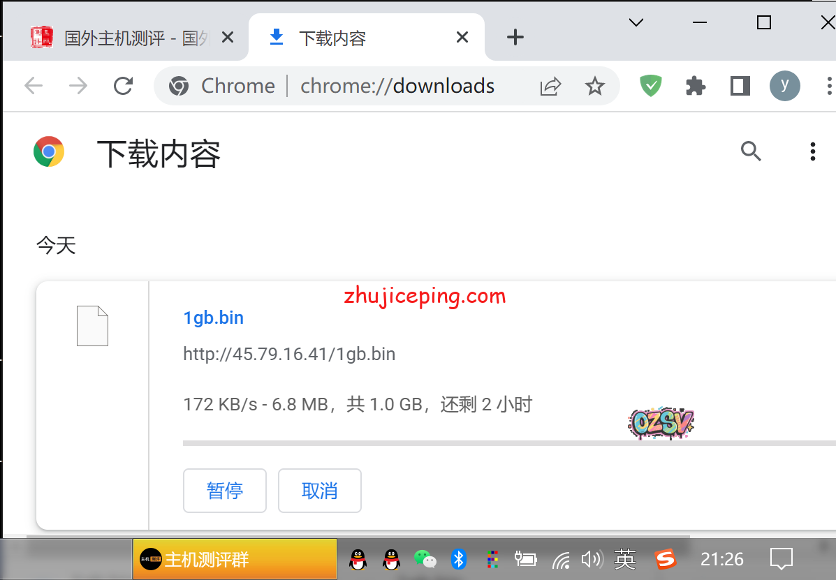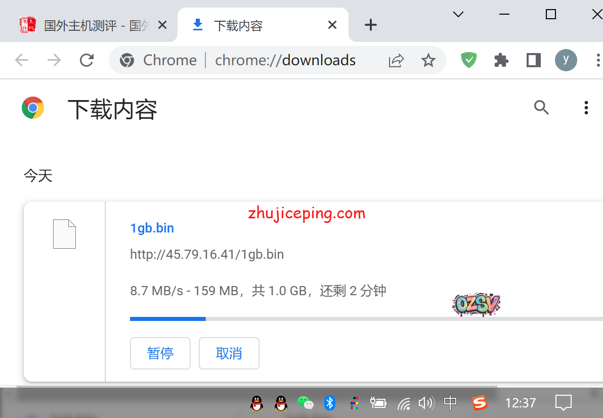 存放在测试小鸡上的文件,广州电信直接用Chrome下载测速: