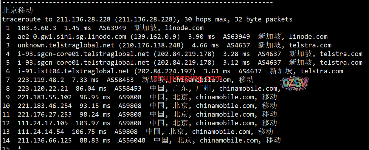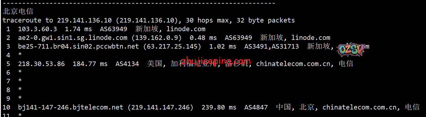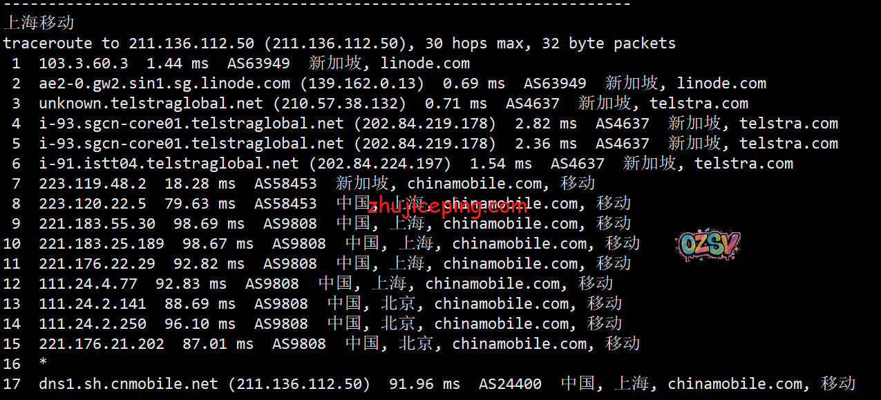 北京、上海方向:从机房出来走telstra到移动新加坡节点然后直连回来
