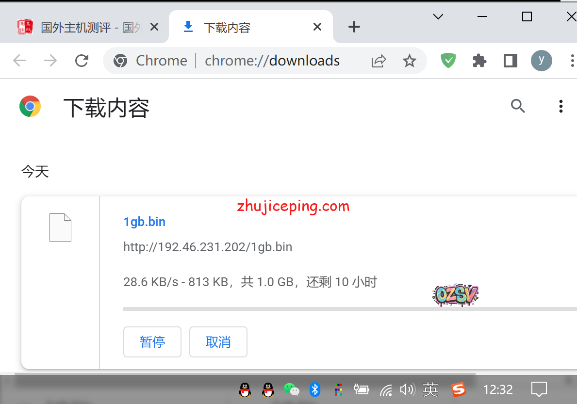 站长存放在测试VPS的NGINX下的文件,广州电信,直接用Chrome下载测试下大致的速度,结果让人吐血:
