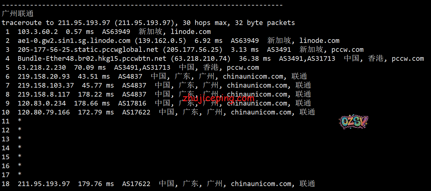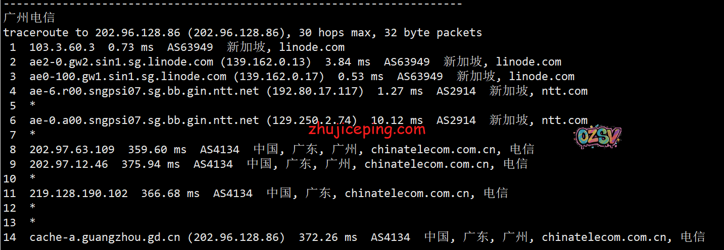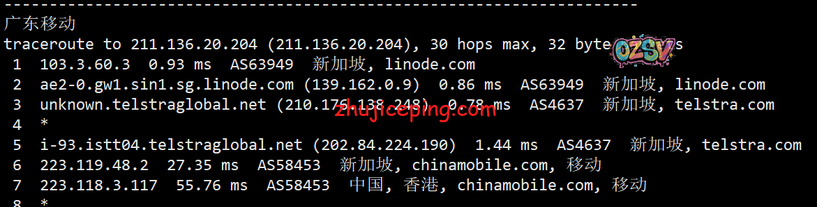 广州方向:新加坡走telstra到新加坡移动节点然后到香港移动再回来