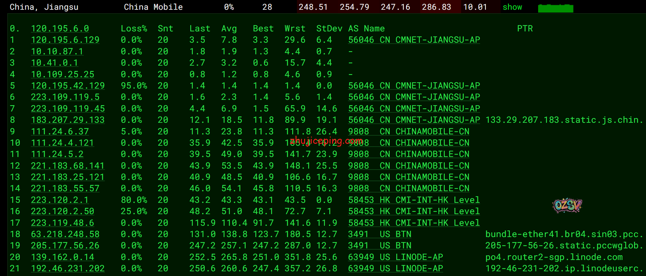 移动:直连或者到香港再回来,这算是三大运营商里面最舒服的了;