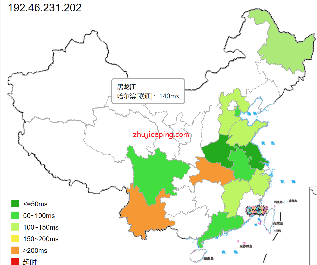 来看看国内80多个节点对小鸡IP的延迟监测结果吧: