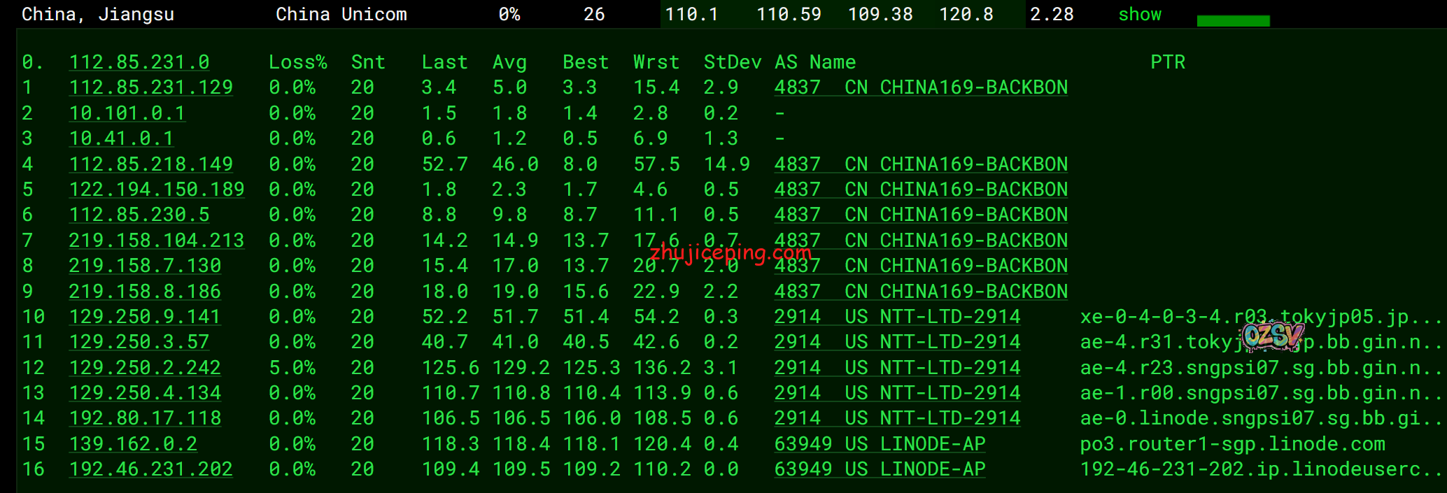 联通:走pccw到香港后回来或者走NTT到日本后回来,还凑合;