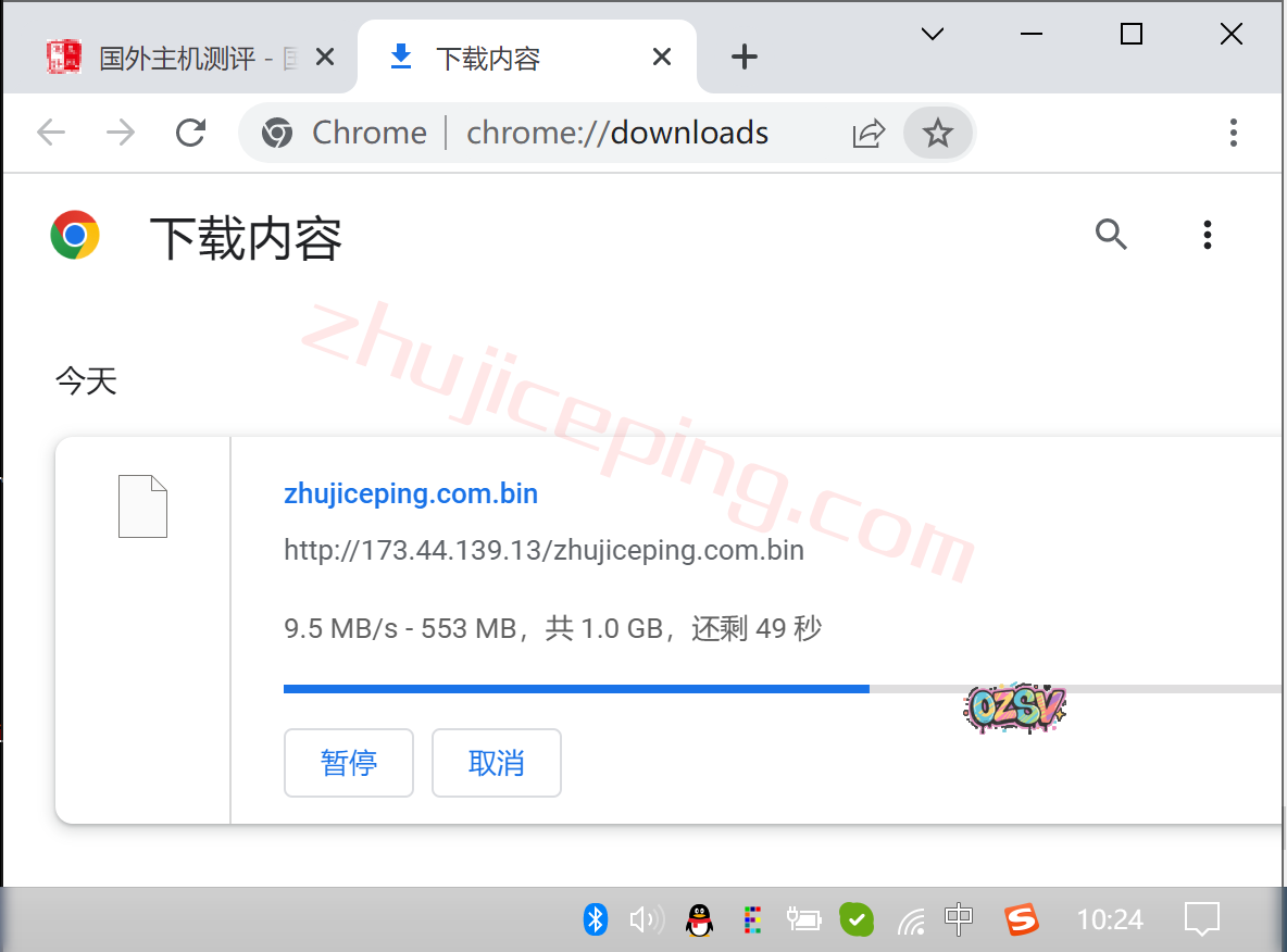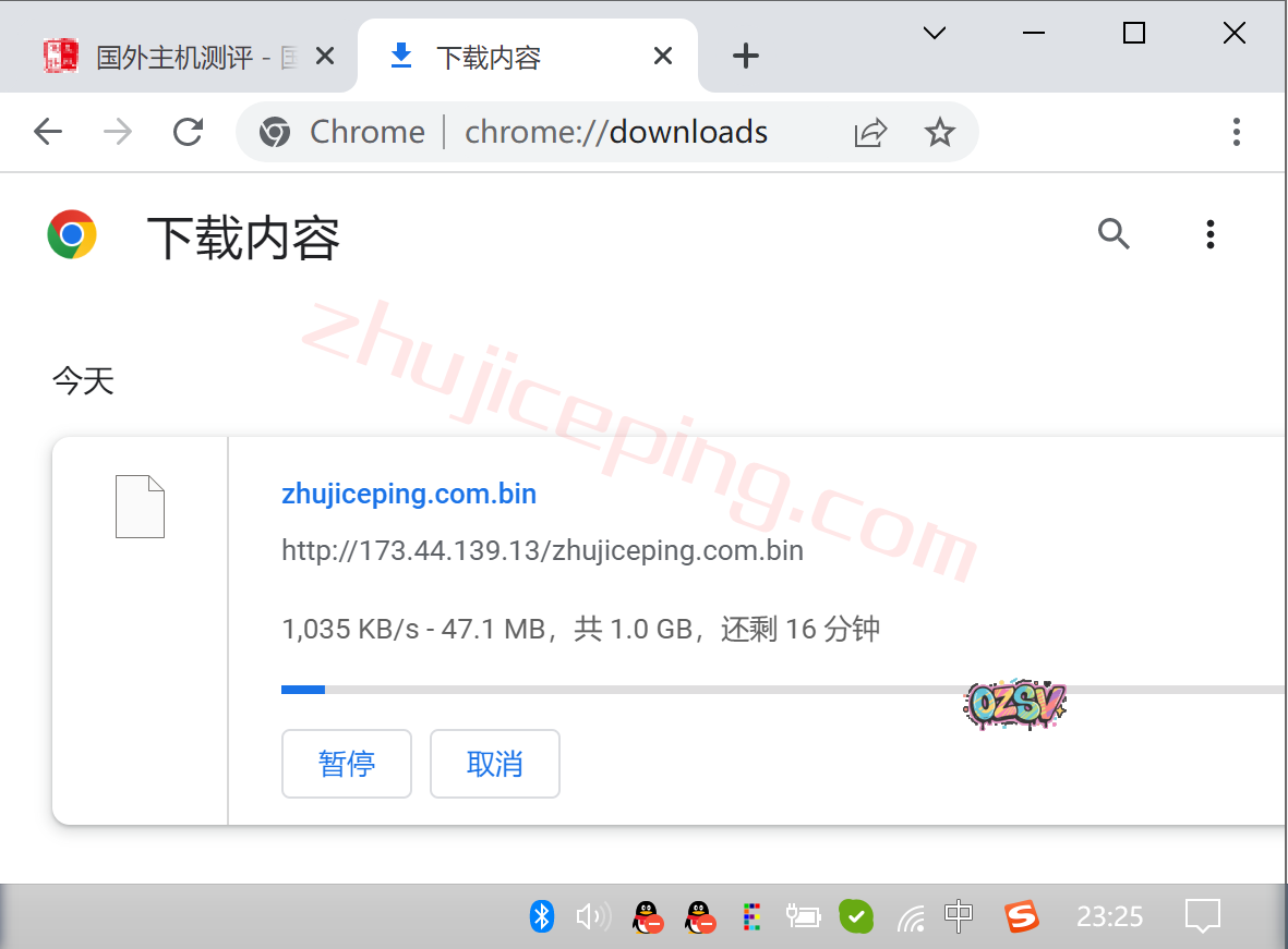 存放在测试小鸡上面的文件,广州电信家庭带宽直接浏览器下载,大致速度: