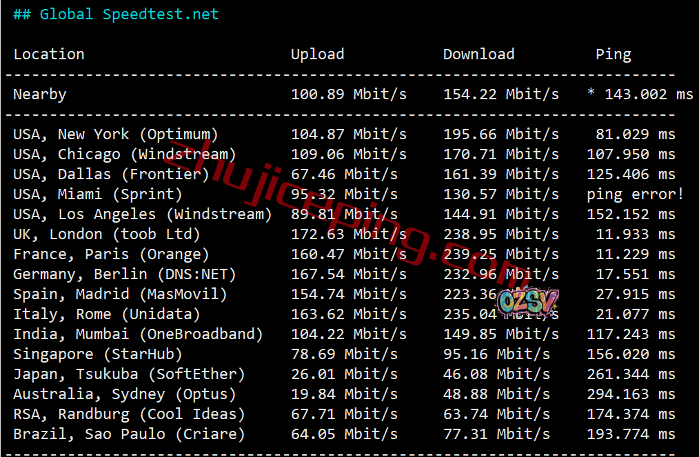 继续跑speedtest的部分国际节点,包括了欧美亚非的节点: