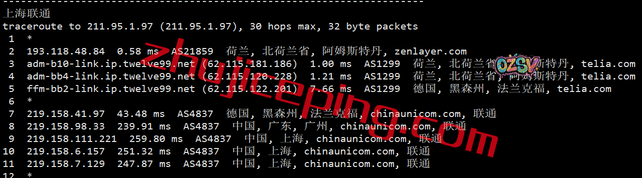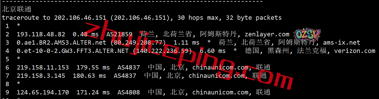 北京方向:从德国法兰克福走Verizon对接联通AS4837