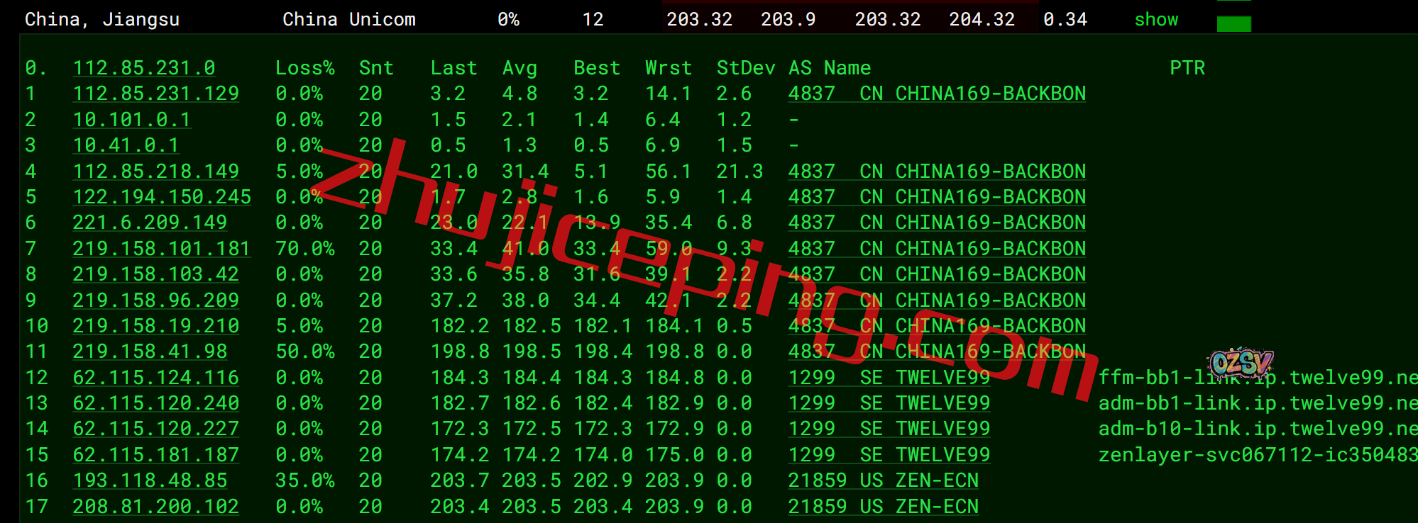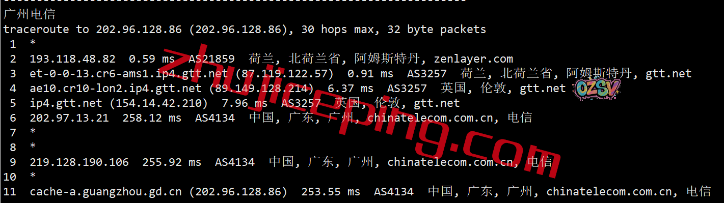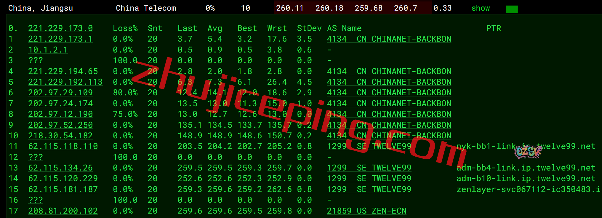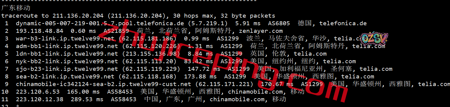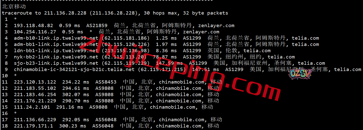北京和广州方向,都是走telia到美国西海岸,经过移动在西海岸的节点直连回国