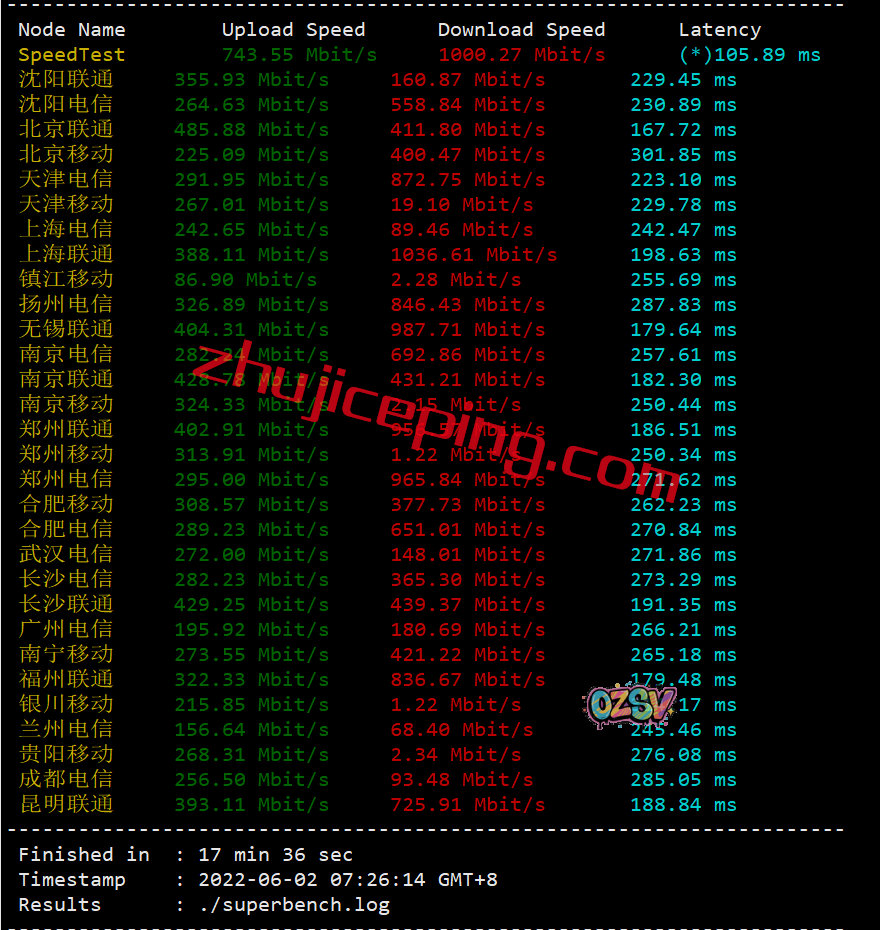 我们用speedtest.net国内多个节点分别跑一圈儿,看看不同地区的上行和下行带宽能跑到什么程度吧: