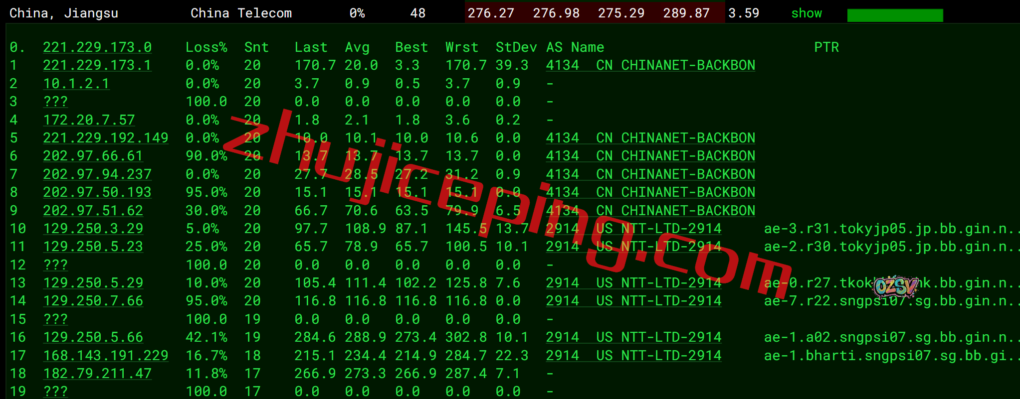 电信去程,骨干网走NTT到日本、新加坡然后去印度: