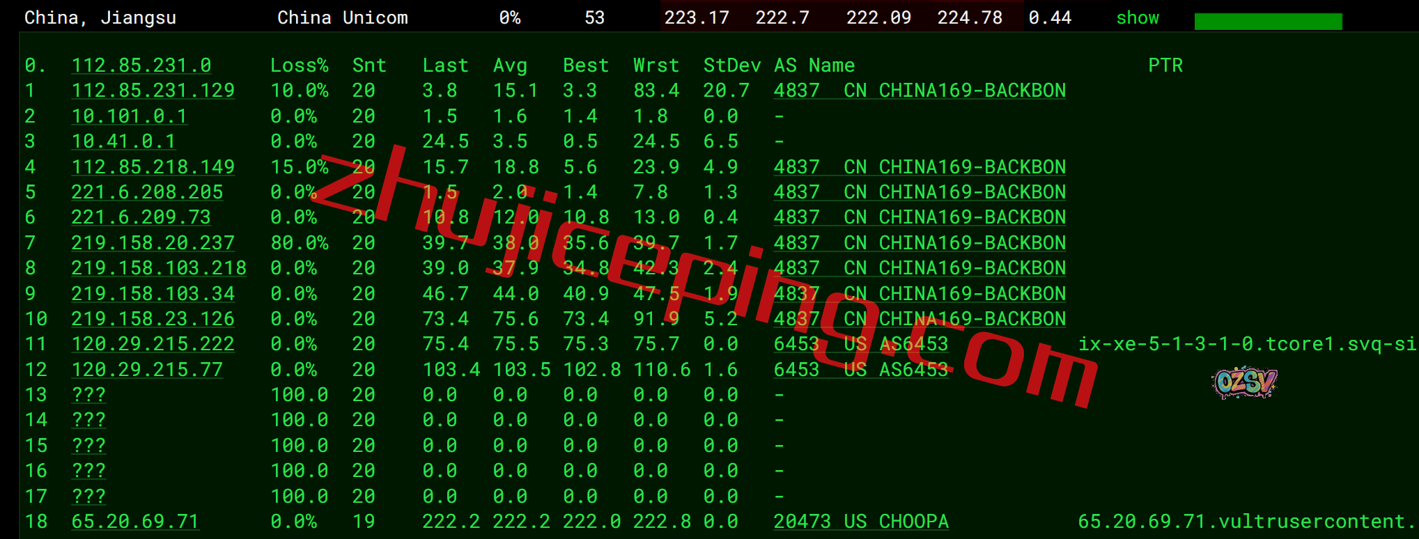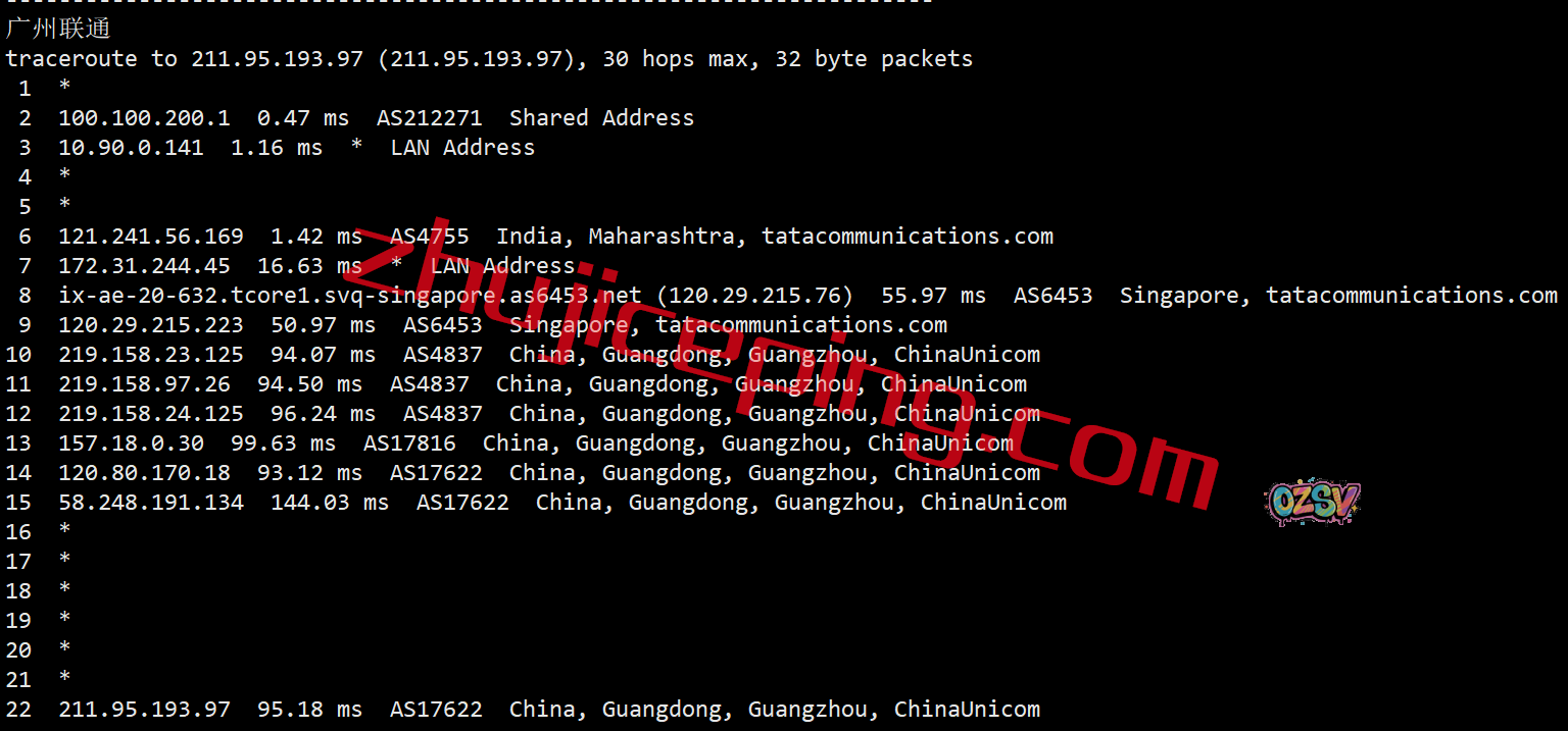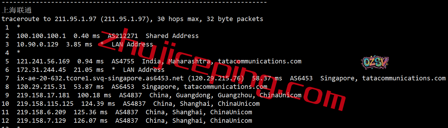 联通去程,骨干网对接TATA经过新加坡后直达: