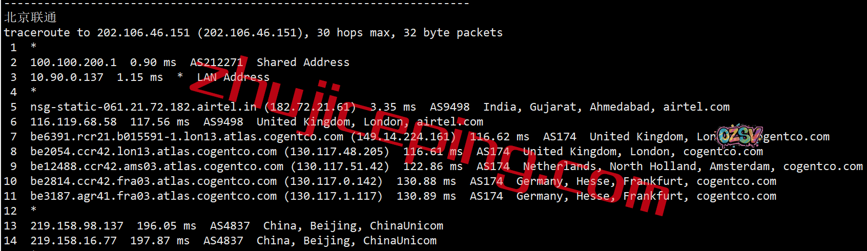 北京方向:印度出来走cogent到英国、荷兰、德国,然后as4837回国