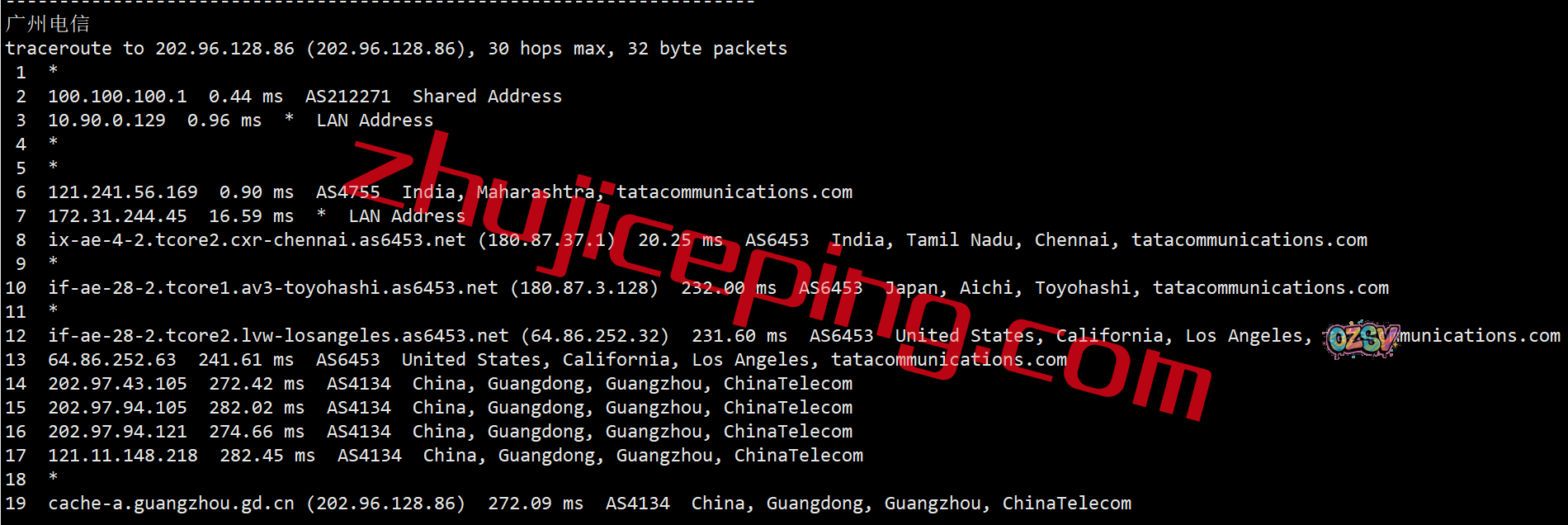 广州方向:印度、英国、美国纽约、西雅图,从移动西雅图节点直连回来