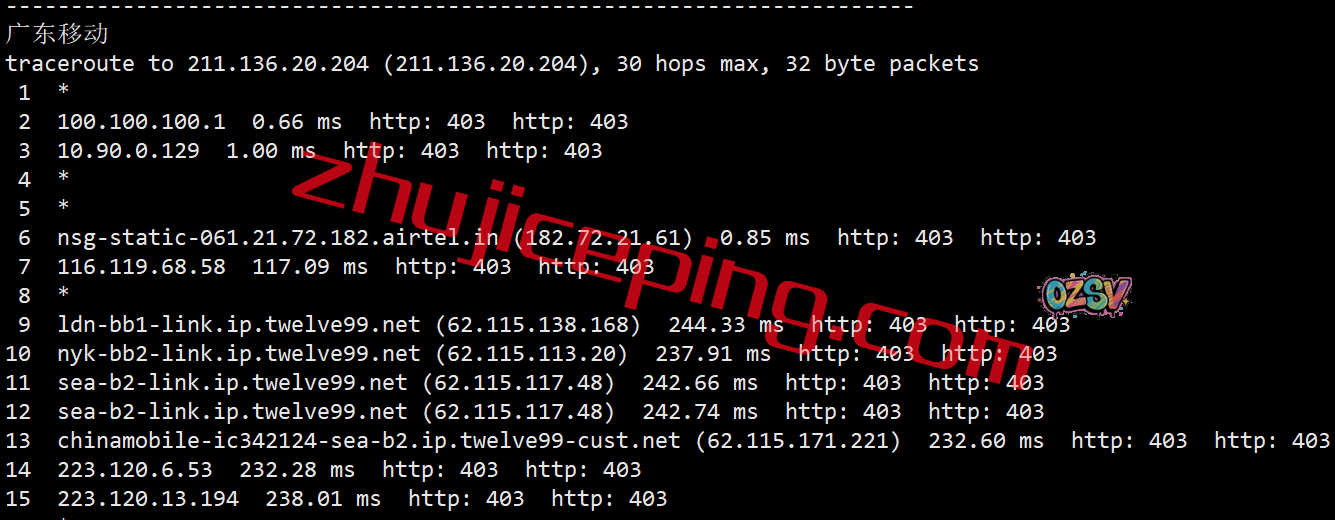 移动去程,国际CMI对接telstra经过新加坡后直达印度