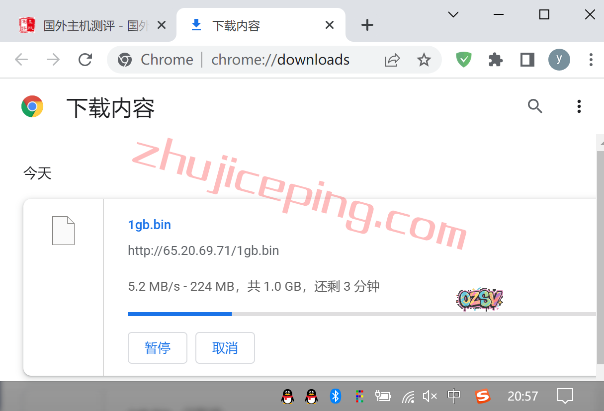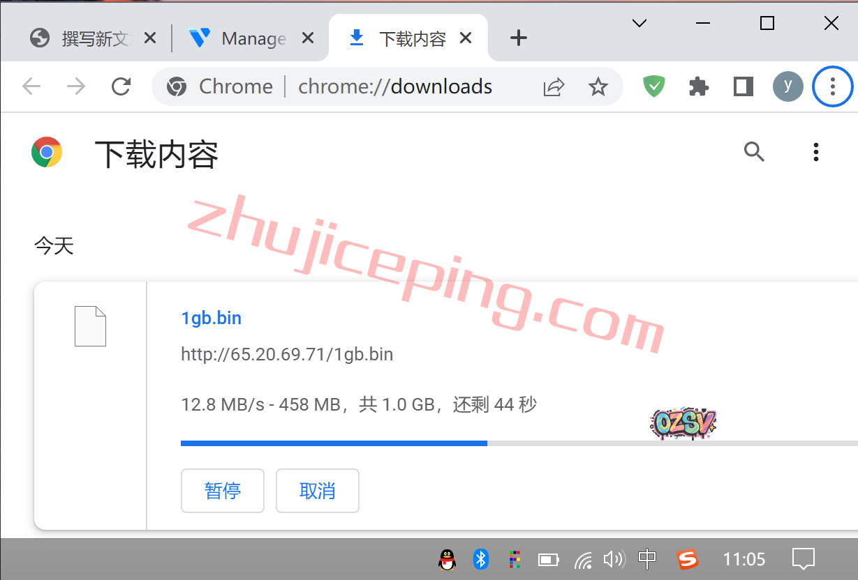 存放在测试小鸡上面的文件,站长广州电信用Chrome下载测试速度,大致结果如下: