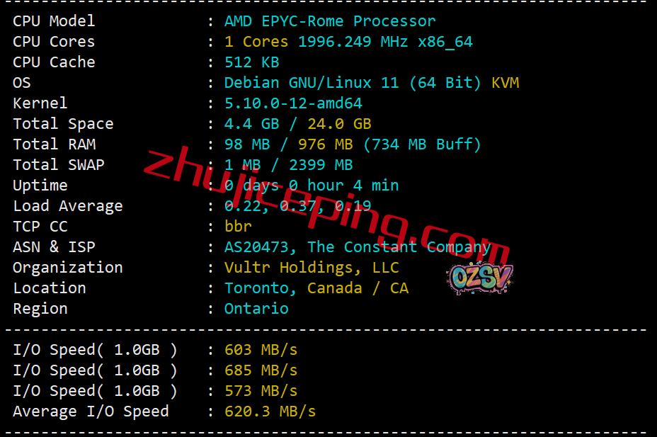 大致猜测CPU应该是AMD EPYC™ 7702 、7702P、7662这三款里面的一种,都是64核128线程。习惯性开启BBR,看到是广播,大致硬盘I/O在620MB/s: