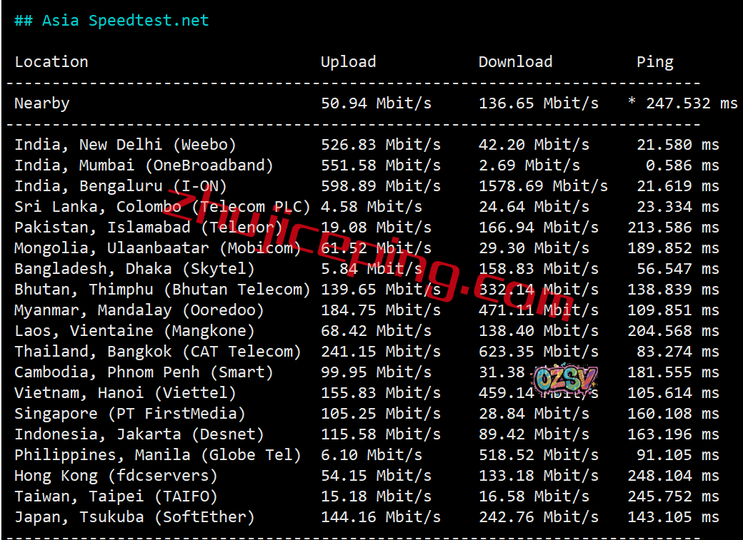 亚洲区域内的其他节点测试,看到印度境内的节点效果最好: