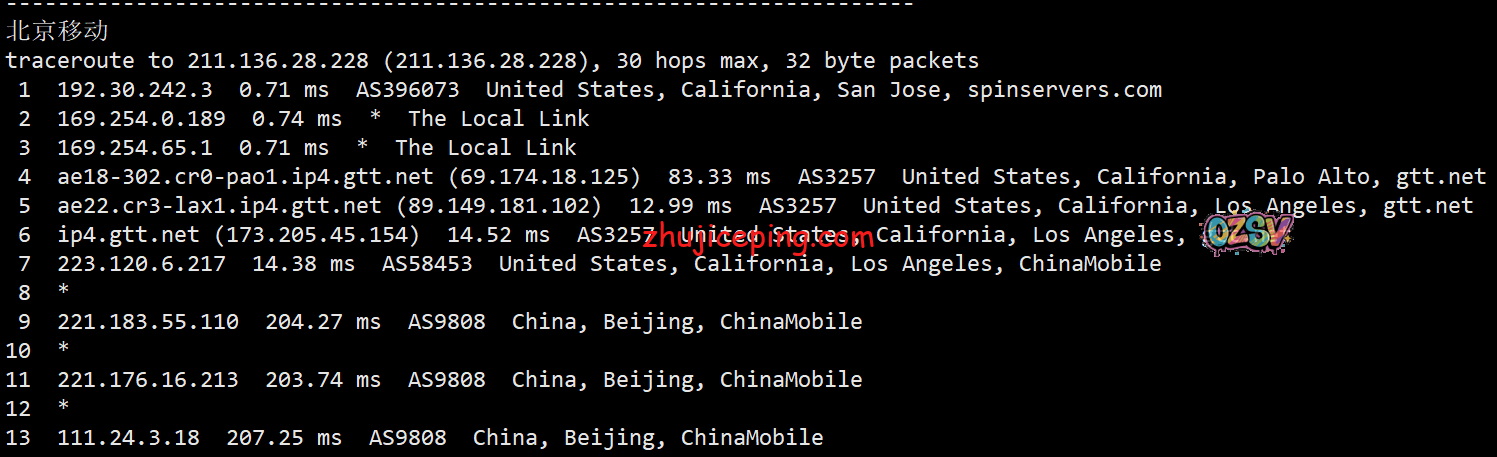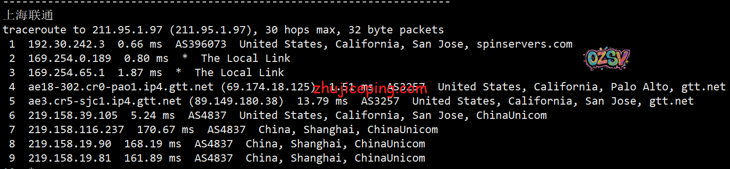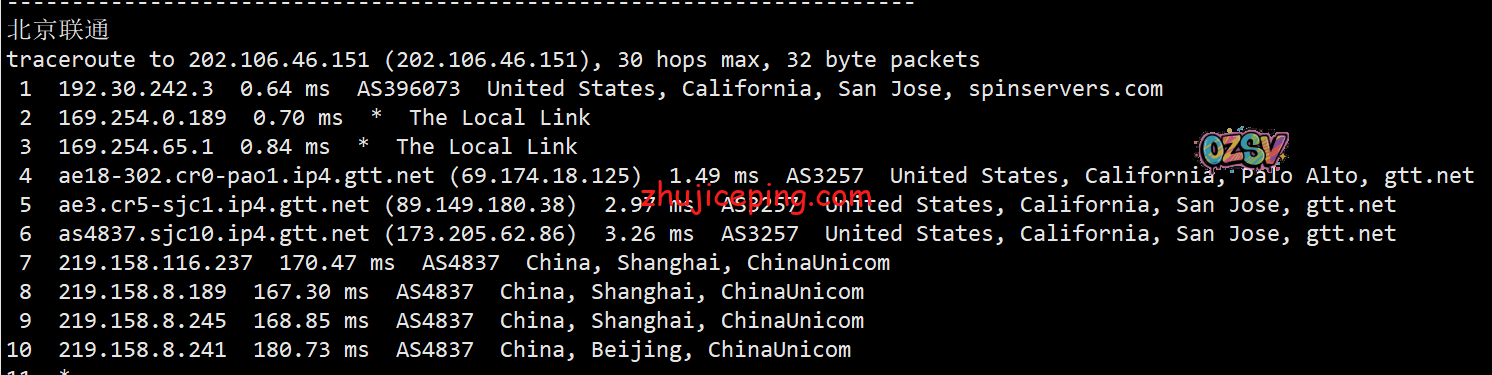 北京和上海方向:走GTT到联通圣何塞节点后走AS4837回来,