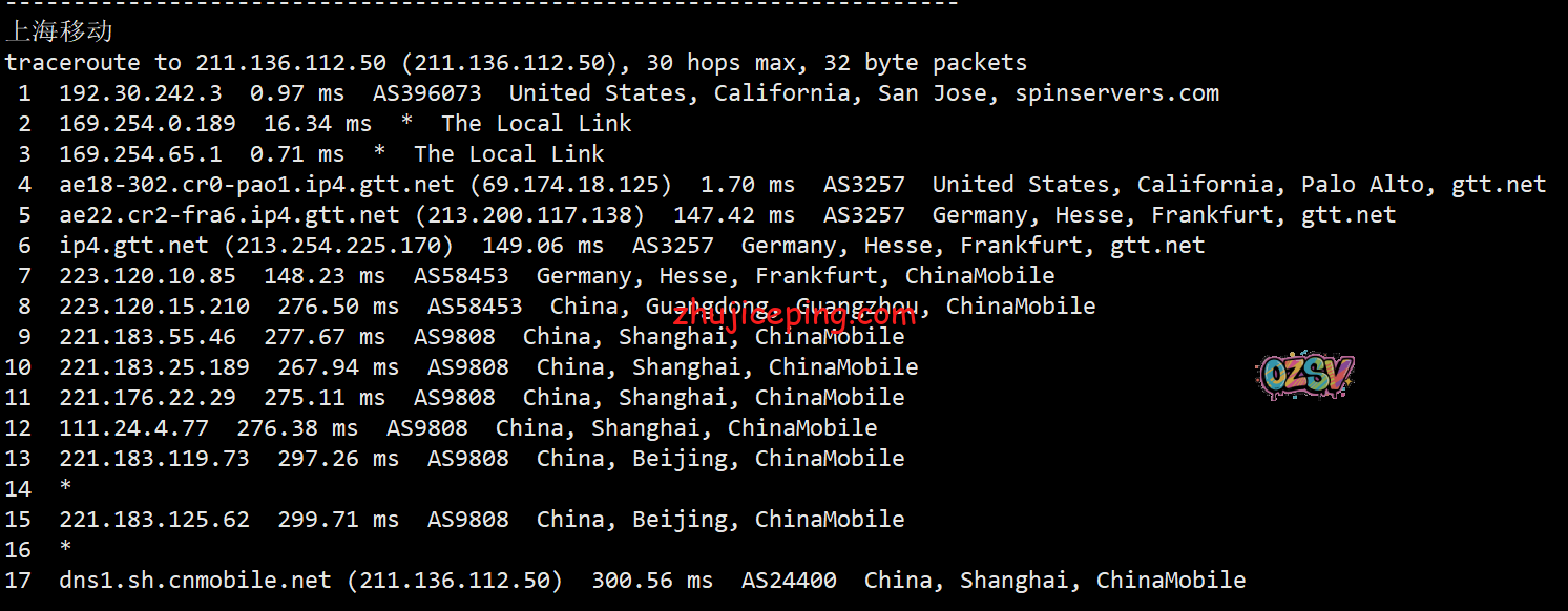 上海方向:先绕到德国,然后经过移动在德国的节点再回来