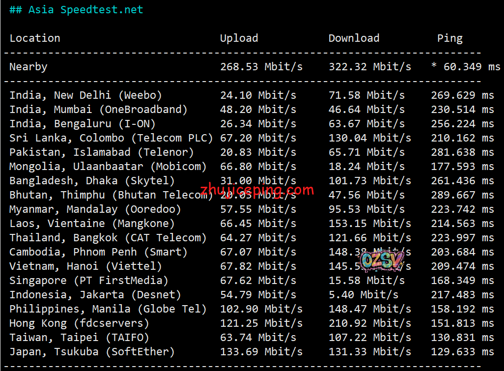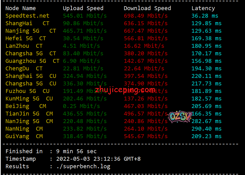 speedtest来测试下VPS的上下行带宽情况,看看可以跑多少吧。大白天的整体看起来还可以哈?!