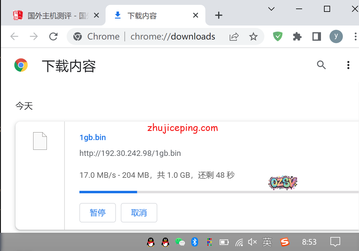 存放在VPS上的文件,广州电信直接用浏览器下载的速度大致如下: