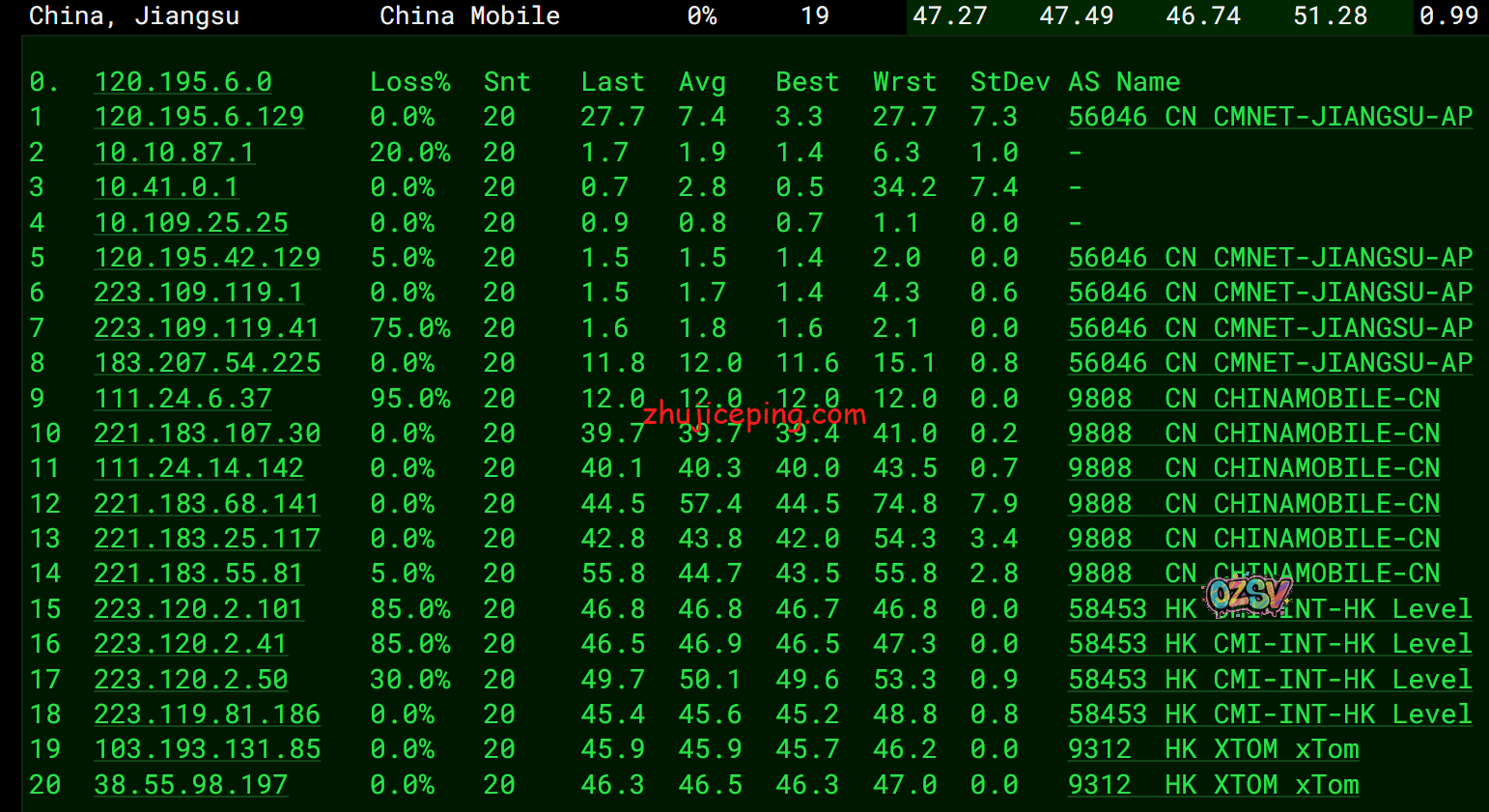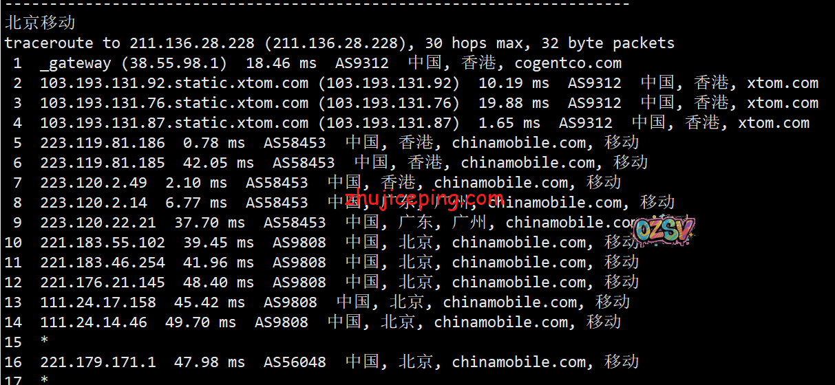 对于电信和联通网路用户来说,去程都是走NTT绕道日本后回香港,但是回程全部都是强制走移动的链路回大陆之后再接各自的链路,所以相对来说效果也还是可以的,起码胜过常规线路的欧美是没问题的。当然,白天和晚上的区别还是很大的,尤其是晚高峰的时候,电信用户炸的最厉害,这点需要大家有个比较清晰的认识!