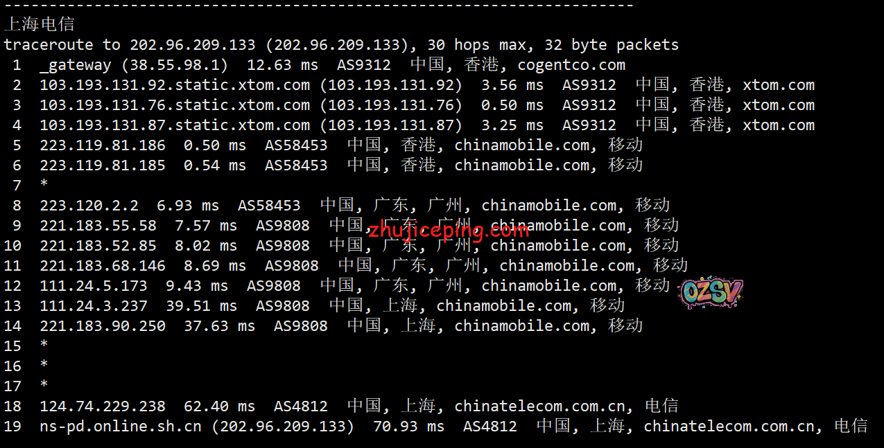 回程,到大陆电信:清一色的强制走移动链路回来,然后在大陆再转