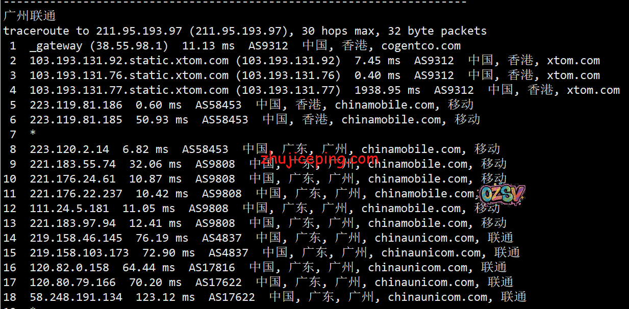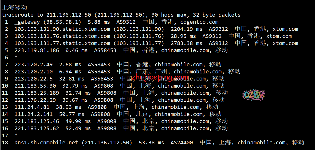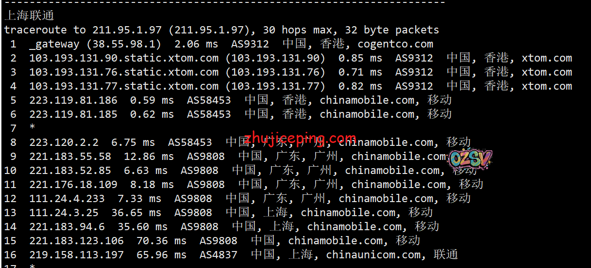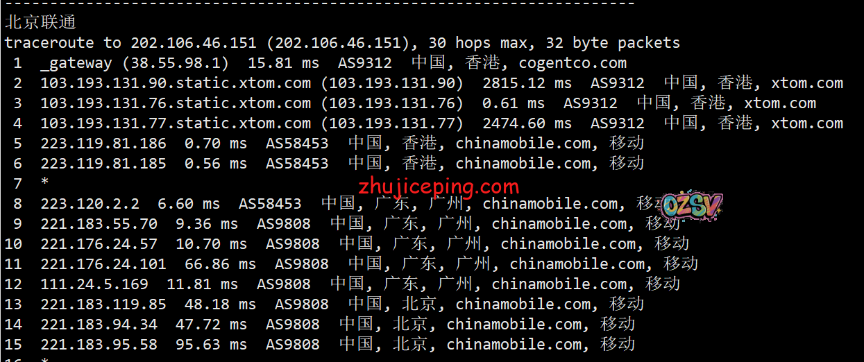 回程,到大陆联通:清一色的强制走移动链路回来,然后在大陆再转