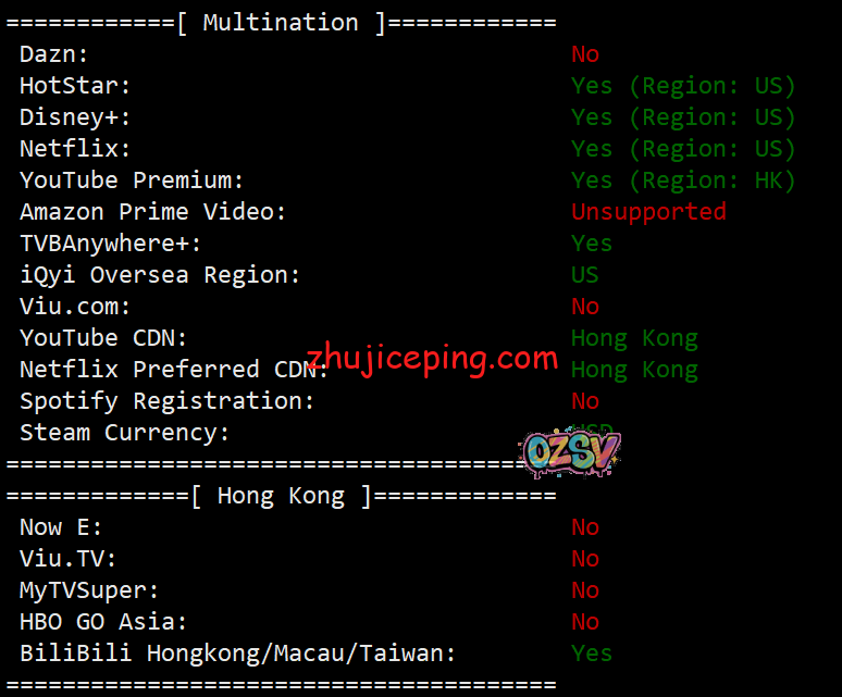 流媒体解锁测试,这里测试了下港区和北美地区,大家看看吧: