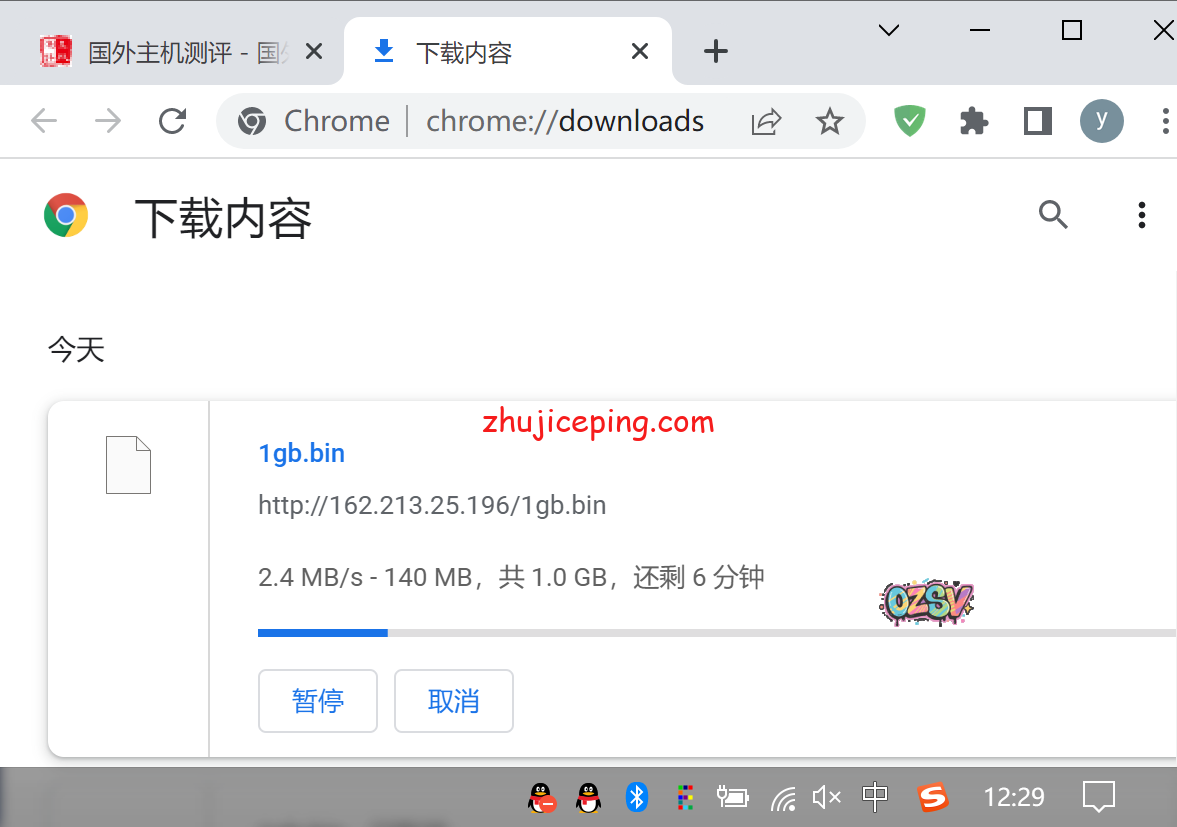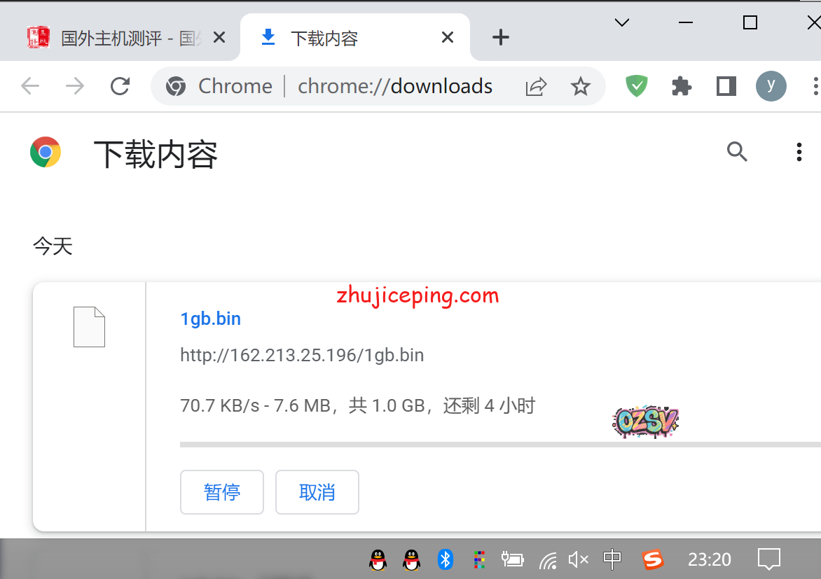 存放在测试小鸡上的文件,直接用浏览器下载,广州电信的大致速度: