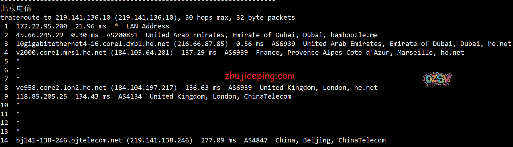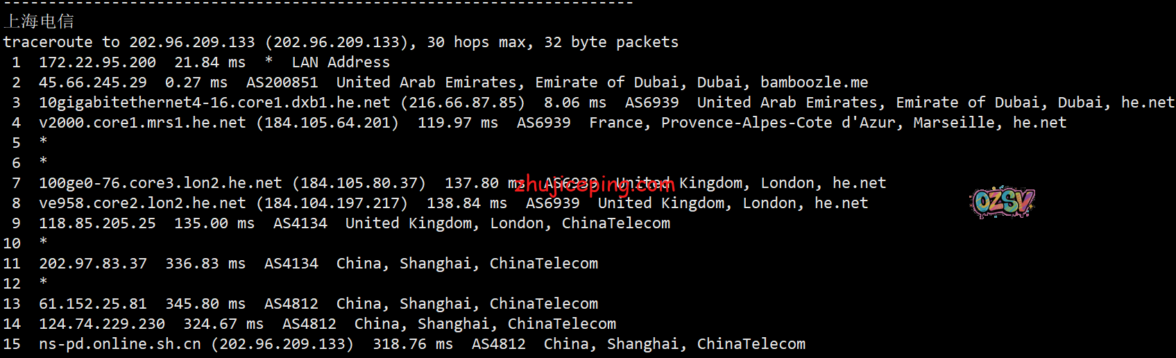 北京、上海方向:从迪拜出来走he.net最后从电信伦敦节点出来直接回国