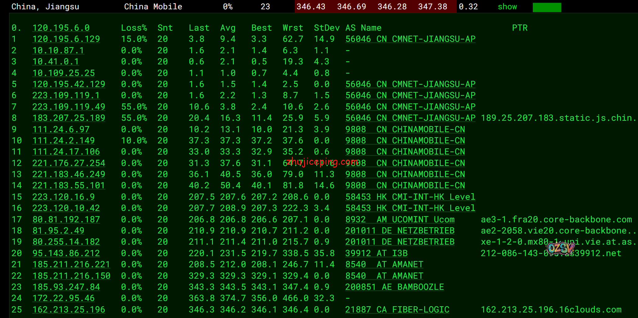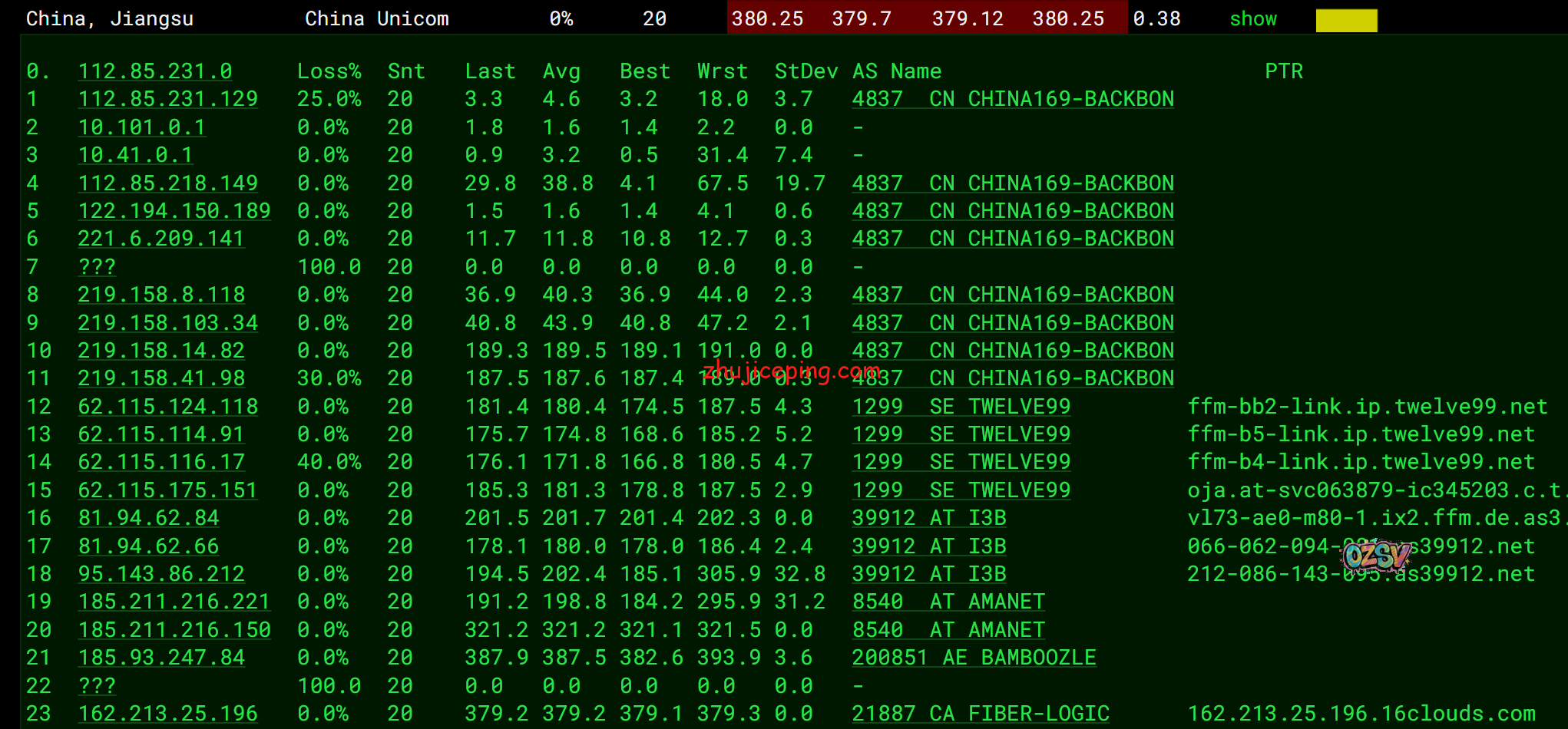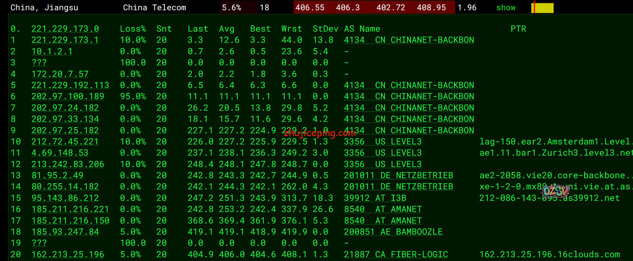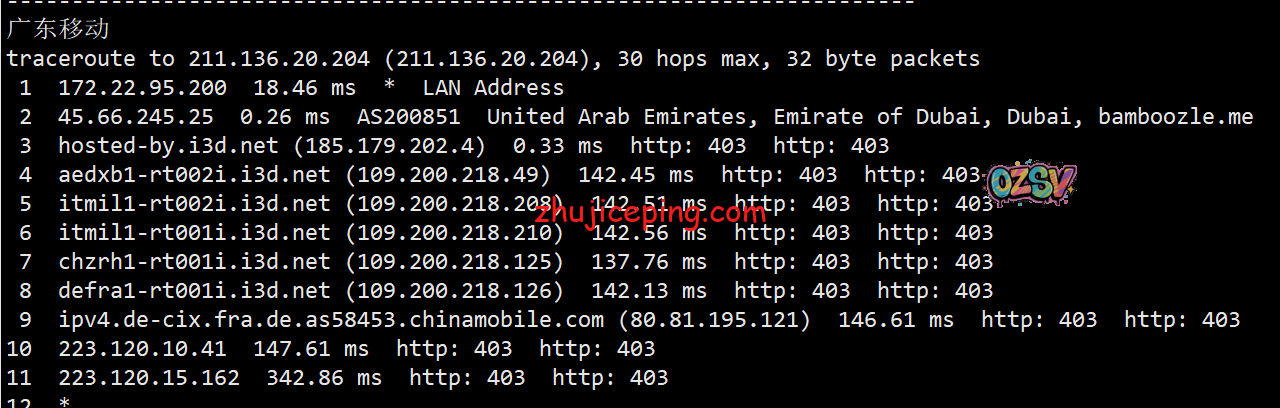 北京\广州方向:先绕去意大利,然后去瑞士,再去德国商业互联网交换中心,再转中国移动德国节点,然后回来