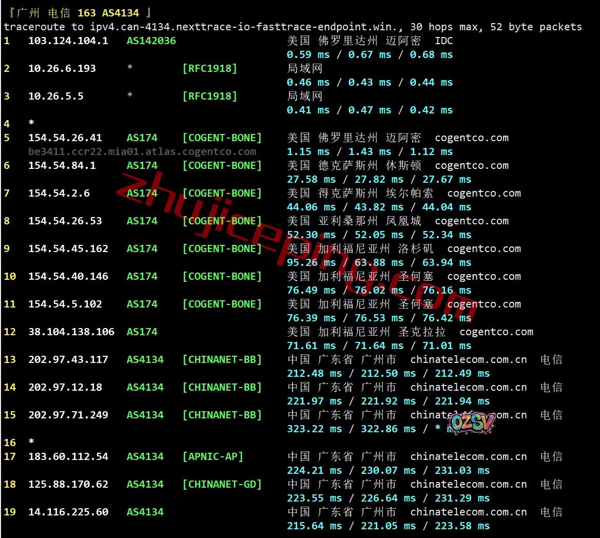 网络方面,电信是纯cogent回国,联通和移动都是从美国西海岸自己的pop或者peer直连回国。
