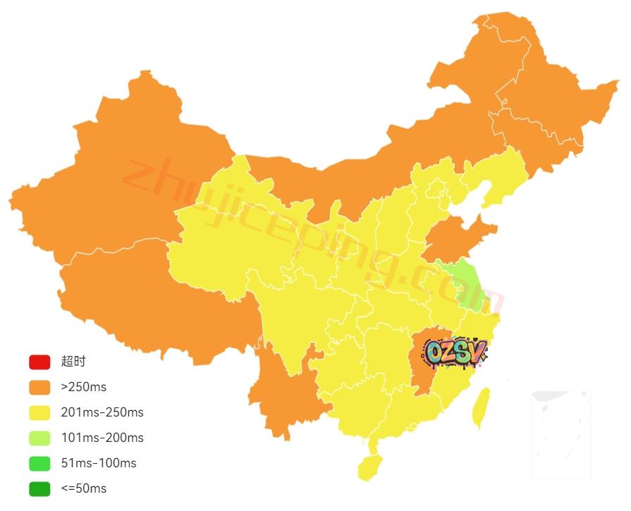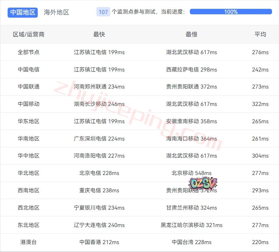 国内三网多节点的延迟测试数据: