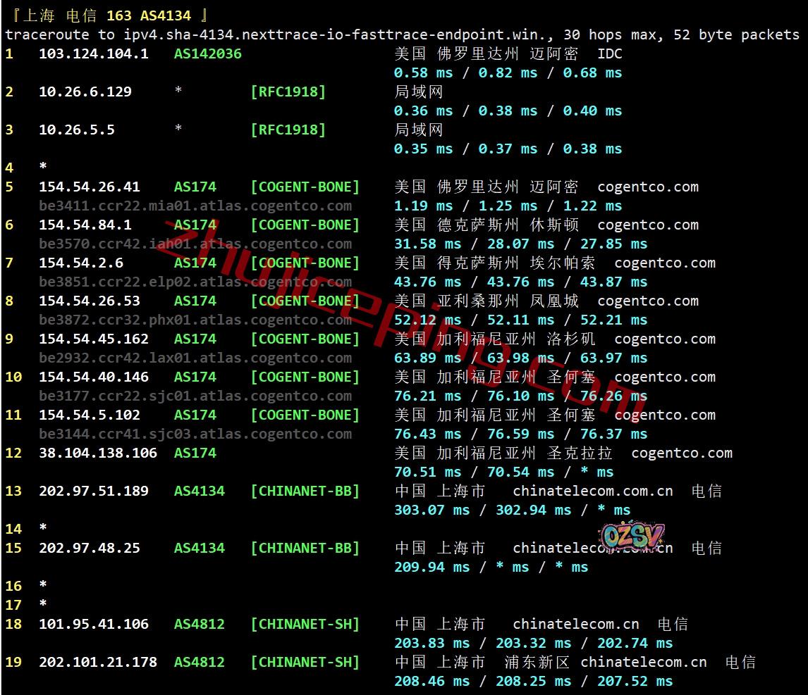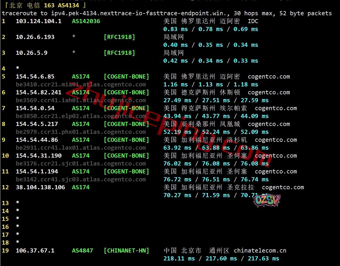 电信回程:走cogent到西海岸圣克拉拉出海回国